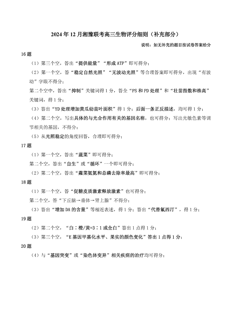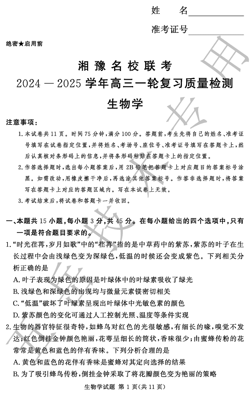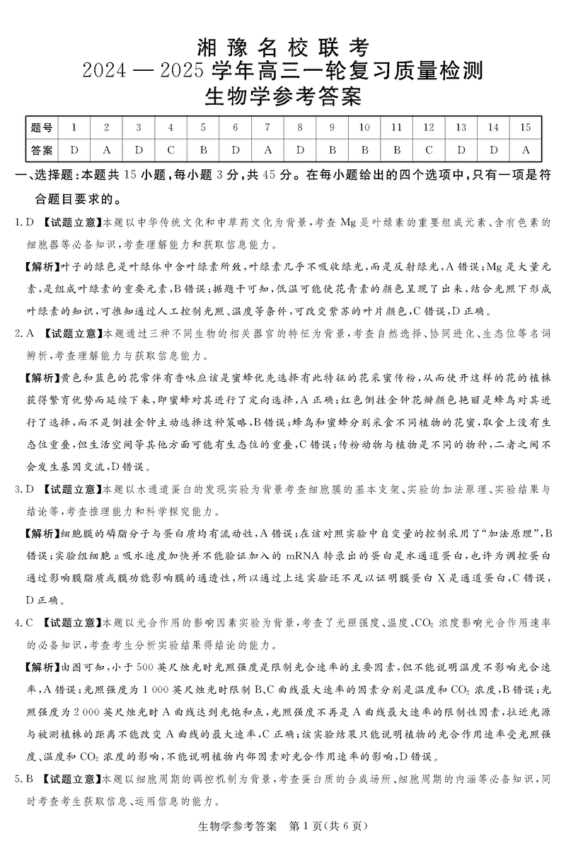 湘豫名校联考2024-2025学年高三上一轮复习质检生物考试已于近日开考,为方便考生考后及时查看考试情况,查漏补缺、弥补不足,本文整理了试题答案解析相关信息!