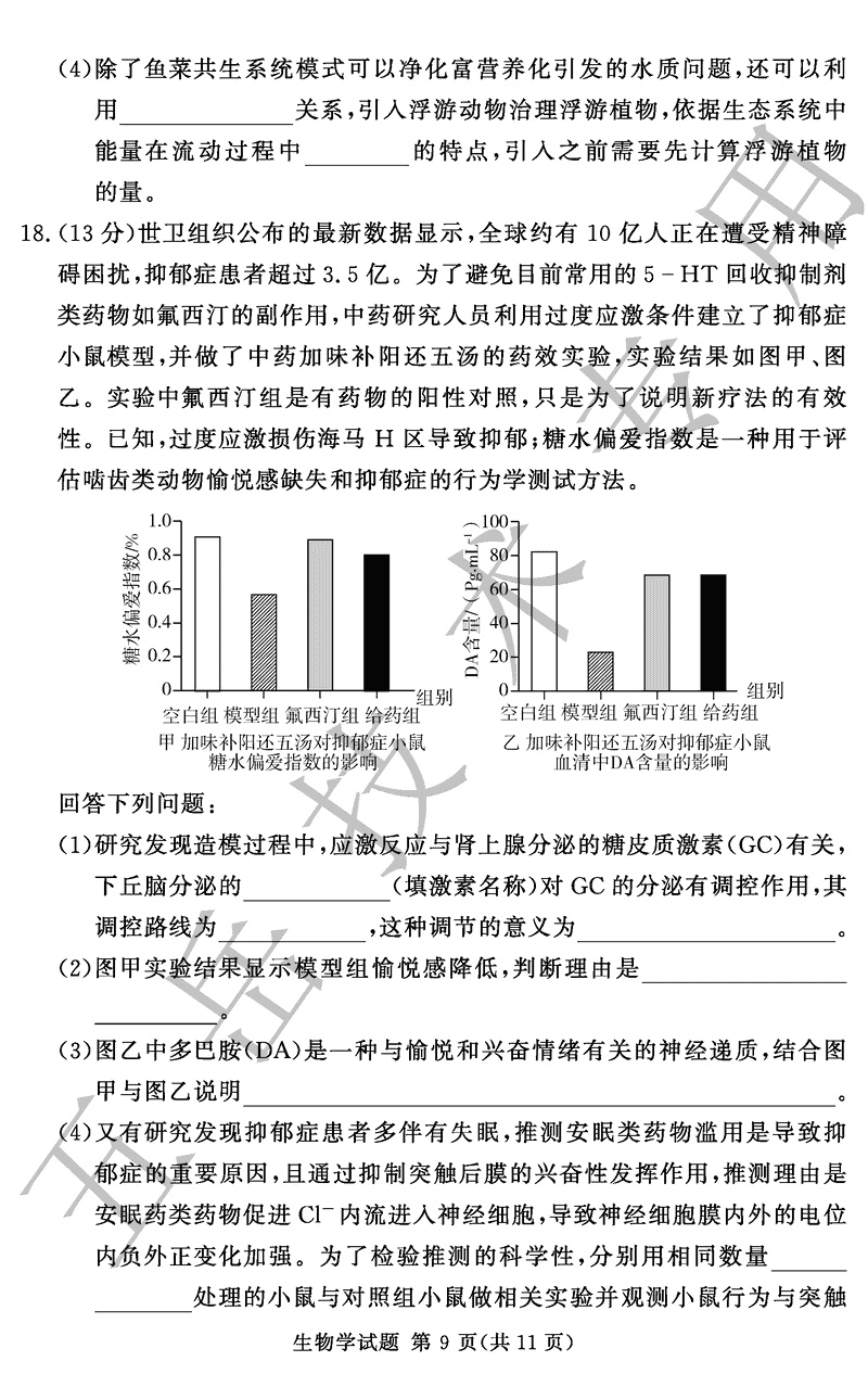 湘豫名校联考2024-2025学年高三上一轮复习质检生物试题及答案