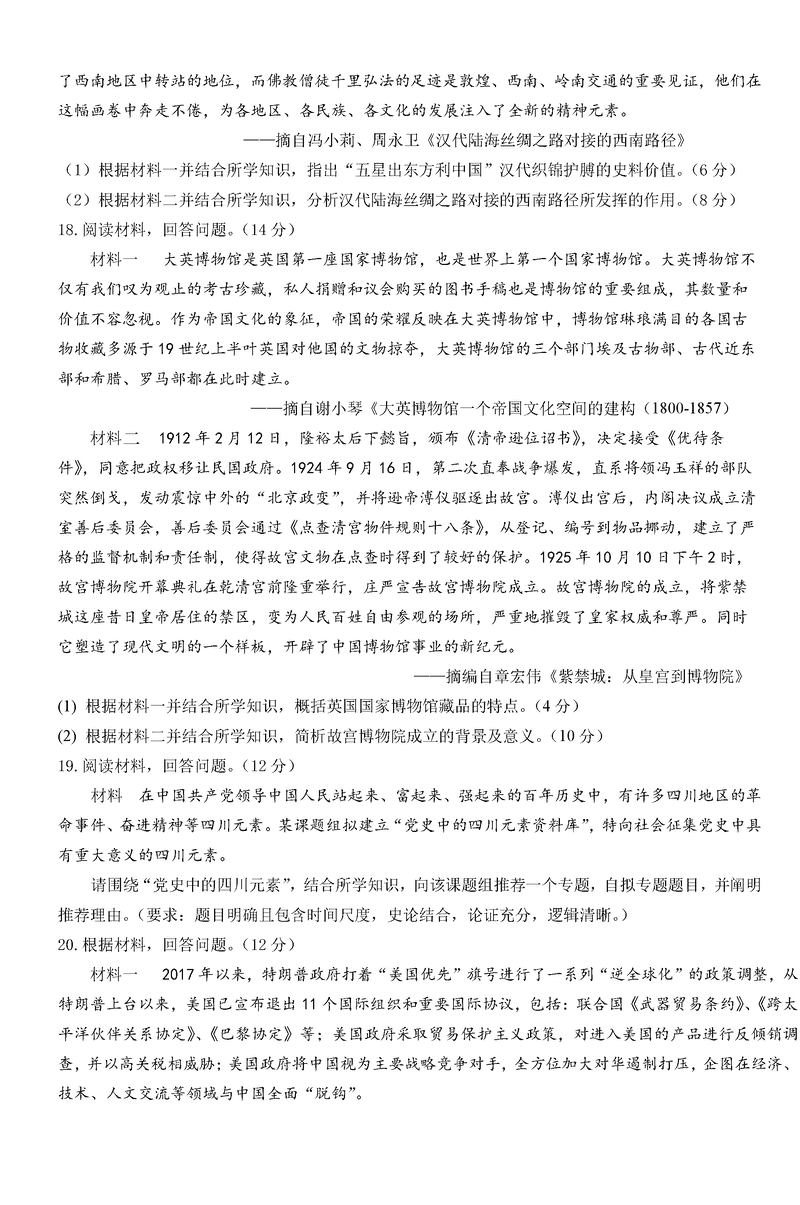 成都石室中学2025年高考适应性测试演练八省联考模拟历史试题及答案