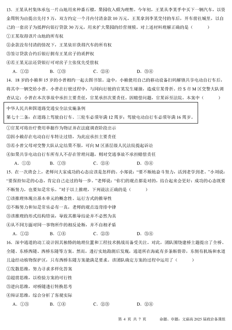 成都石室中学2025年高考适应性测试演练八省联考模拟政治试题及答案
