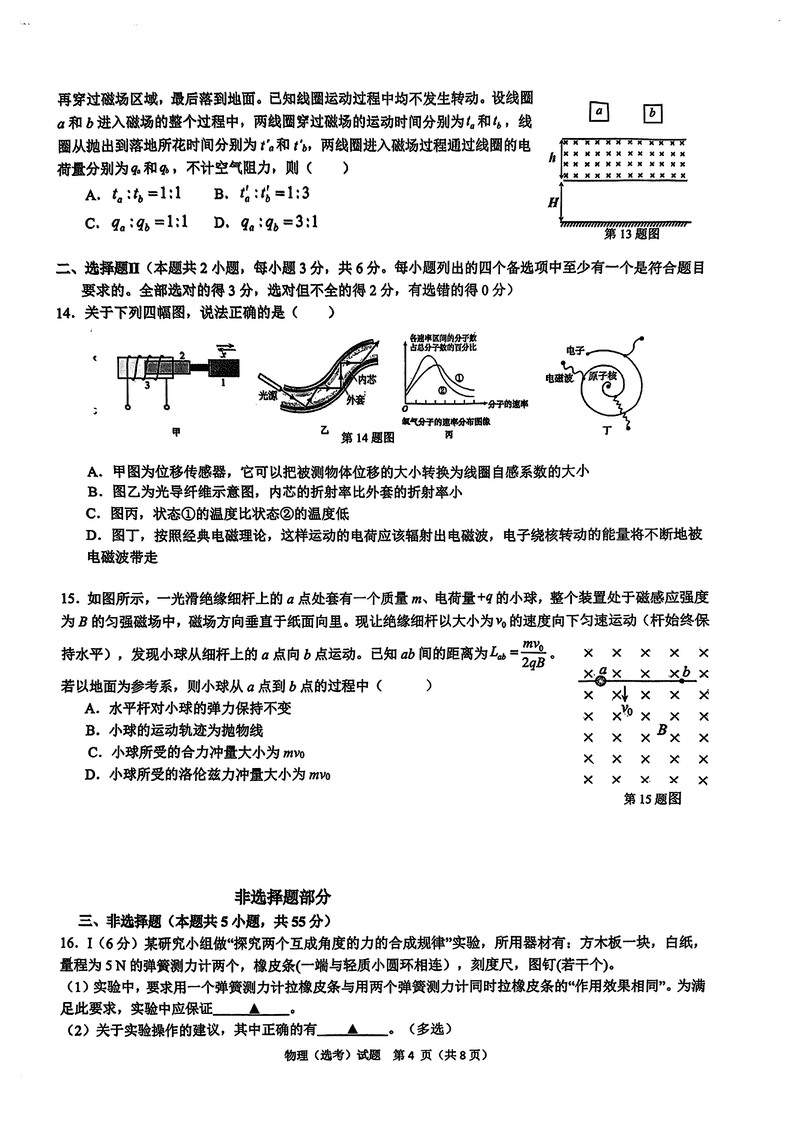 浙江北斗星盟2024年高三上学期12月月考物理试题及答案
