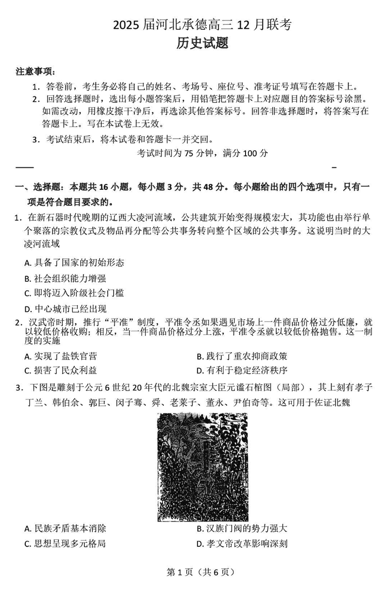 河北承德2025届高三上学期12月联考历史试题及答案 时间:2024-12-30 河北 文综试题 浙江北斗星盟2024年高三上学期12月月考历史考试已于近日开考,为方便考生考后及时查看考试情况,查漏补缺、弥补不足,本文整理了试题答案解析相关信息! 汇总:河北承德2025届高三上学期12月联考试题及答案汇总 历史试题及答案解析