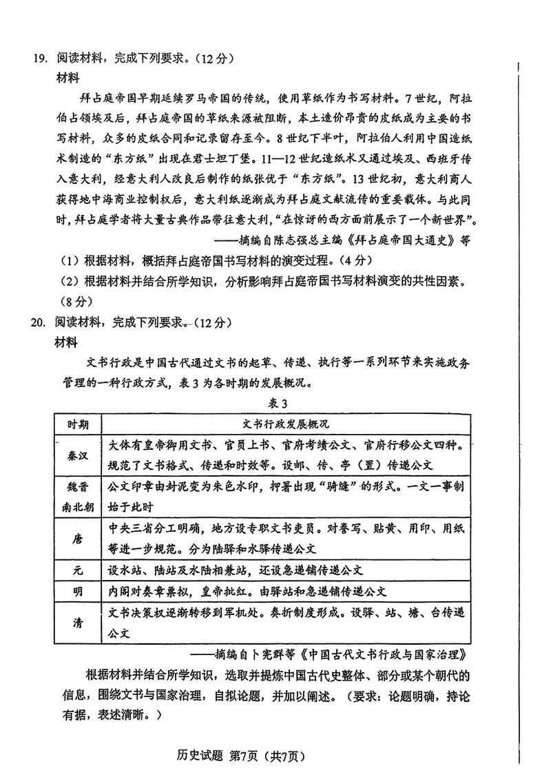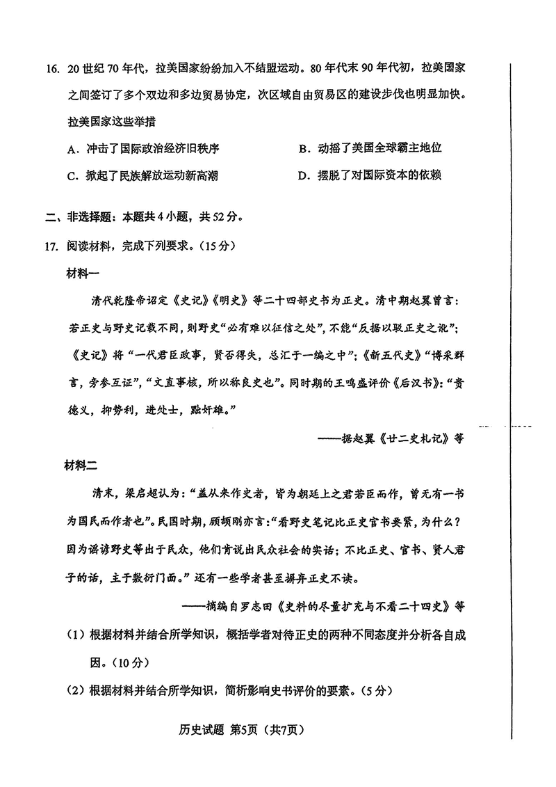 内蒙古八省联考2025年高考综合改革适应性演练历史试题及答案