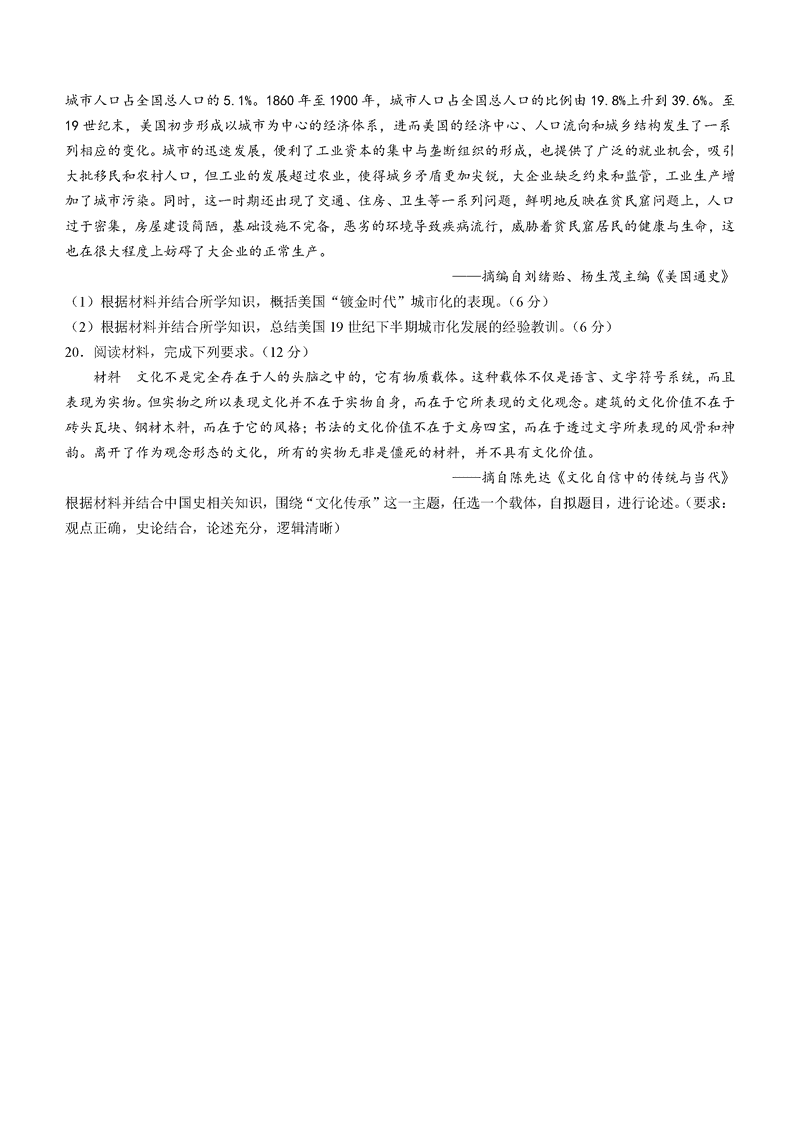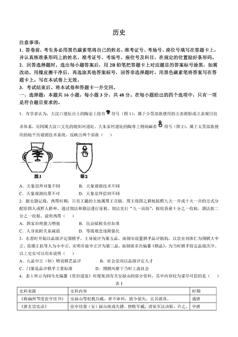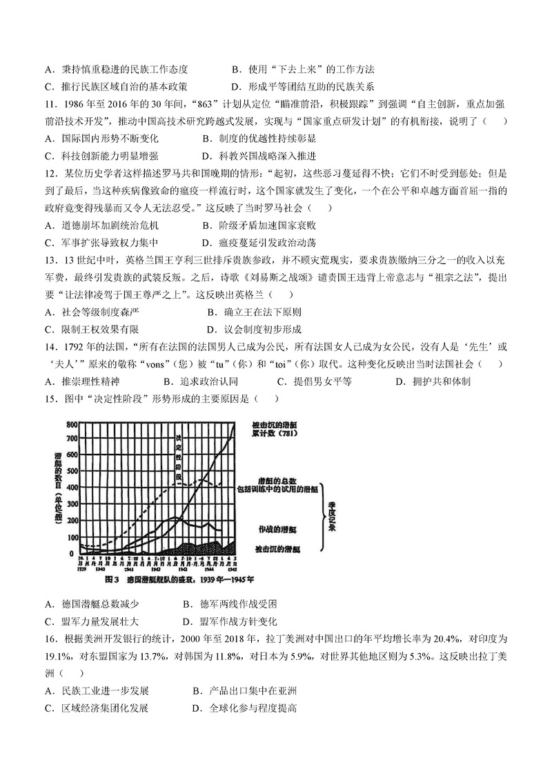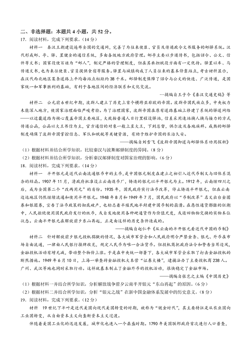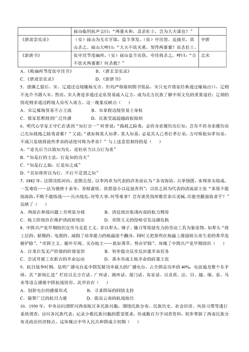 云南2025年1月八省联考历史试题及答案
