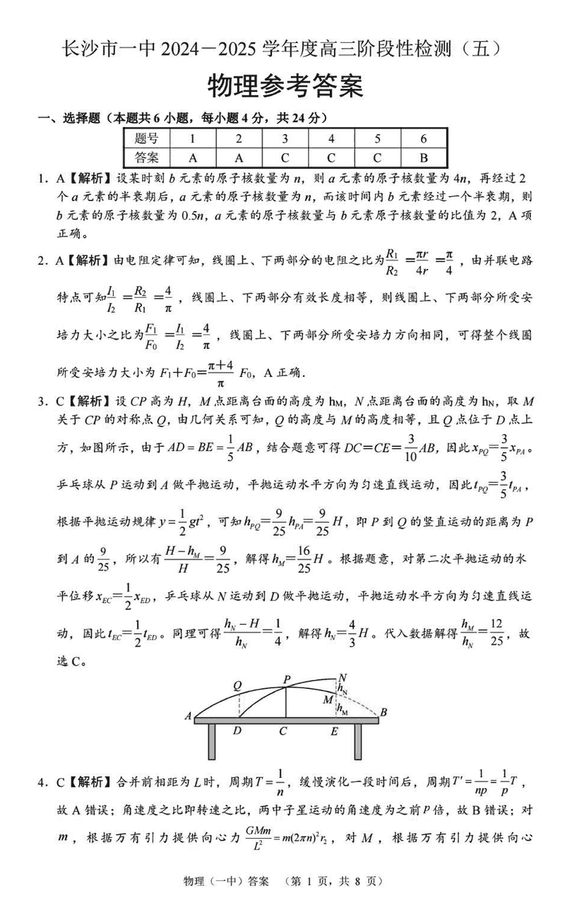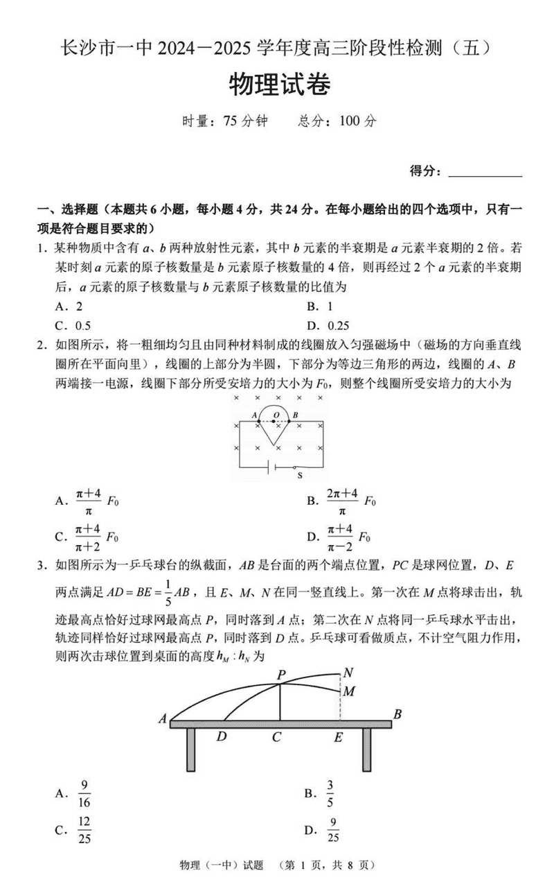 湖南长沙一中2025届高三上学期阶段性检测(五)物理考试已于近日开考,为方便考生考后及时查看考试情况,查漏补缺、弥补不足,本文整理了试题答案解析相关信息!