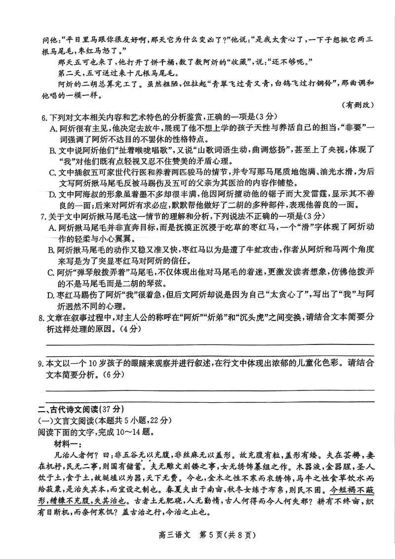 语文试题及答案解析