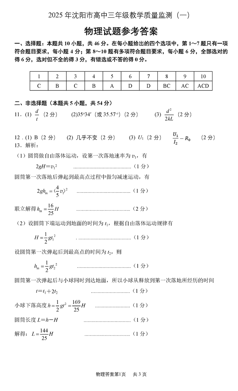 沈阳2025届高三上学期教学质量监测(一)物理考试已于近日开考,为方便考生考后及时查看考试情况,查漏补缺、弥补不足,本文整理了试题答案解析相关信息!