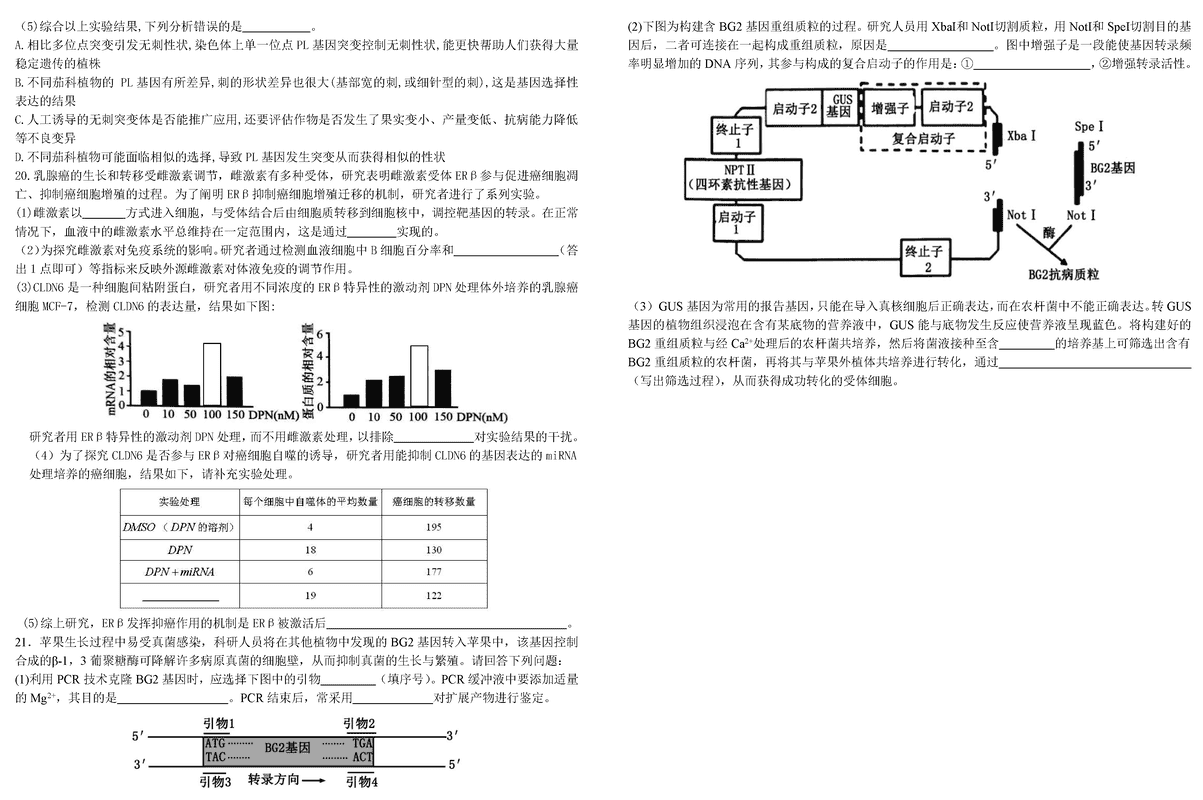 江西省十校协作体2025届高三第一次联考生物试题及答案