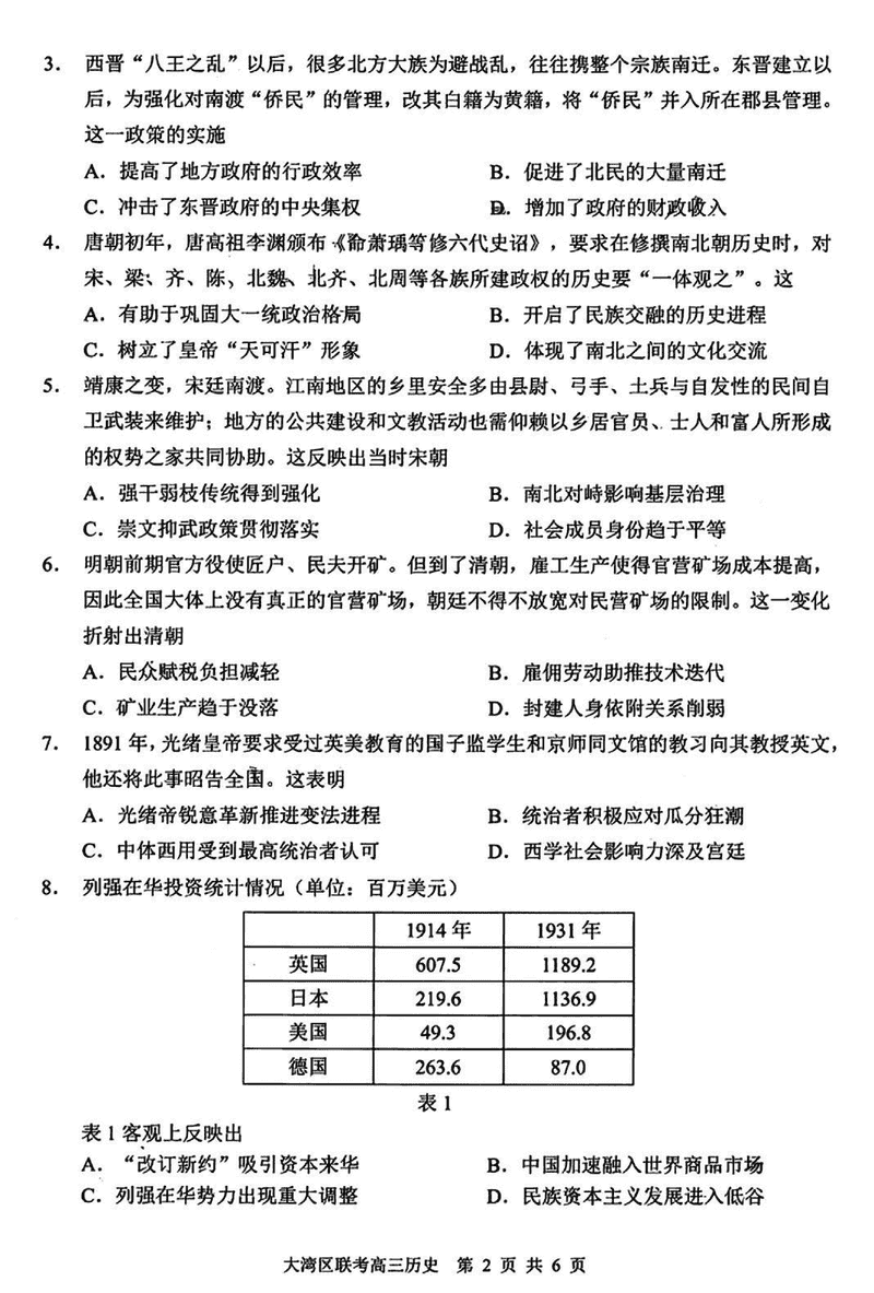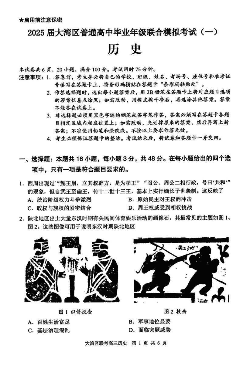 2025届广东省大湾区高三联合模拟考试(一)历史试题及答案