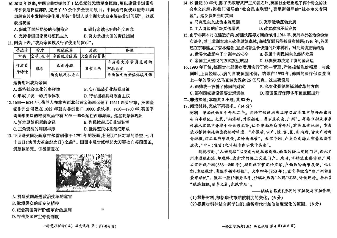 百师联盟2025届高三一轮复习联考(五)历史试题及答案