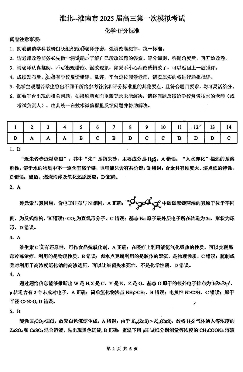 淮南市、淮北市2025届高三上学期第一次质检化学考试已于近日开考,为方便考生考后及时查看考试情况,查漏补缺、弥补不足,本文整理了试题答案解析相关信息!