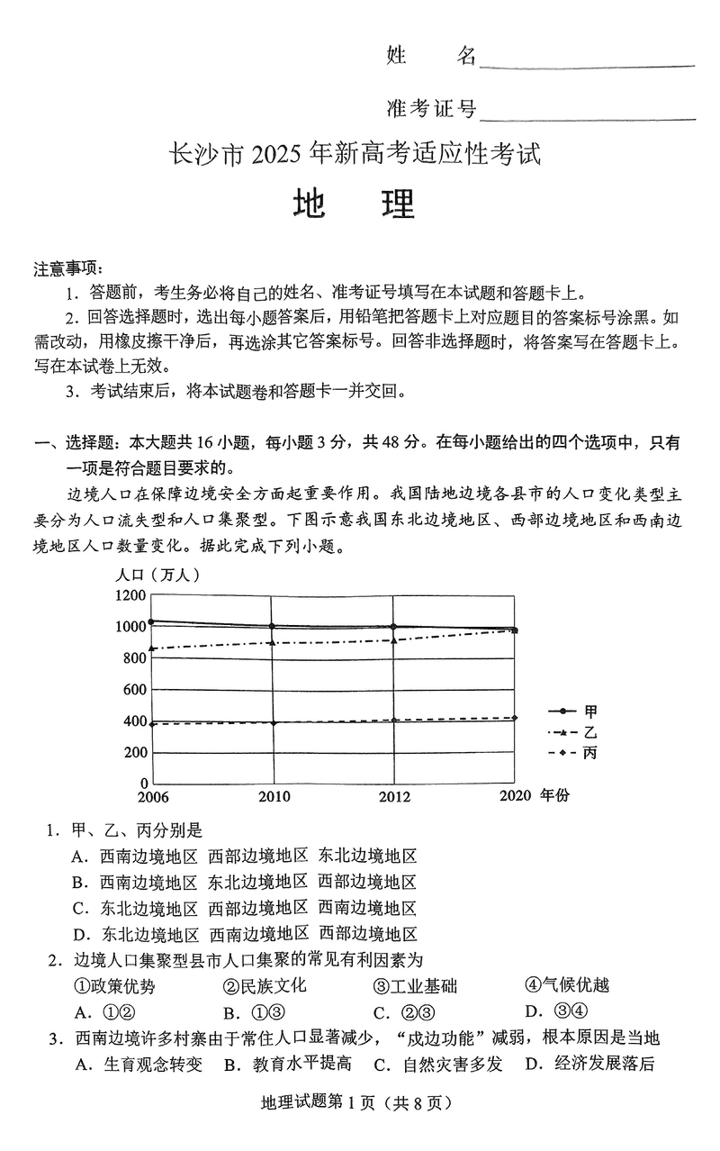 长沙市2024-2025学年高三上学期新高考适应性考试地理考试已于近日开考,为方便考生考后及时查看考试情况,查漏补缺、弥补不足,本文整理了试题答案解析相关信息!
