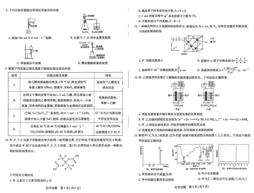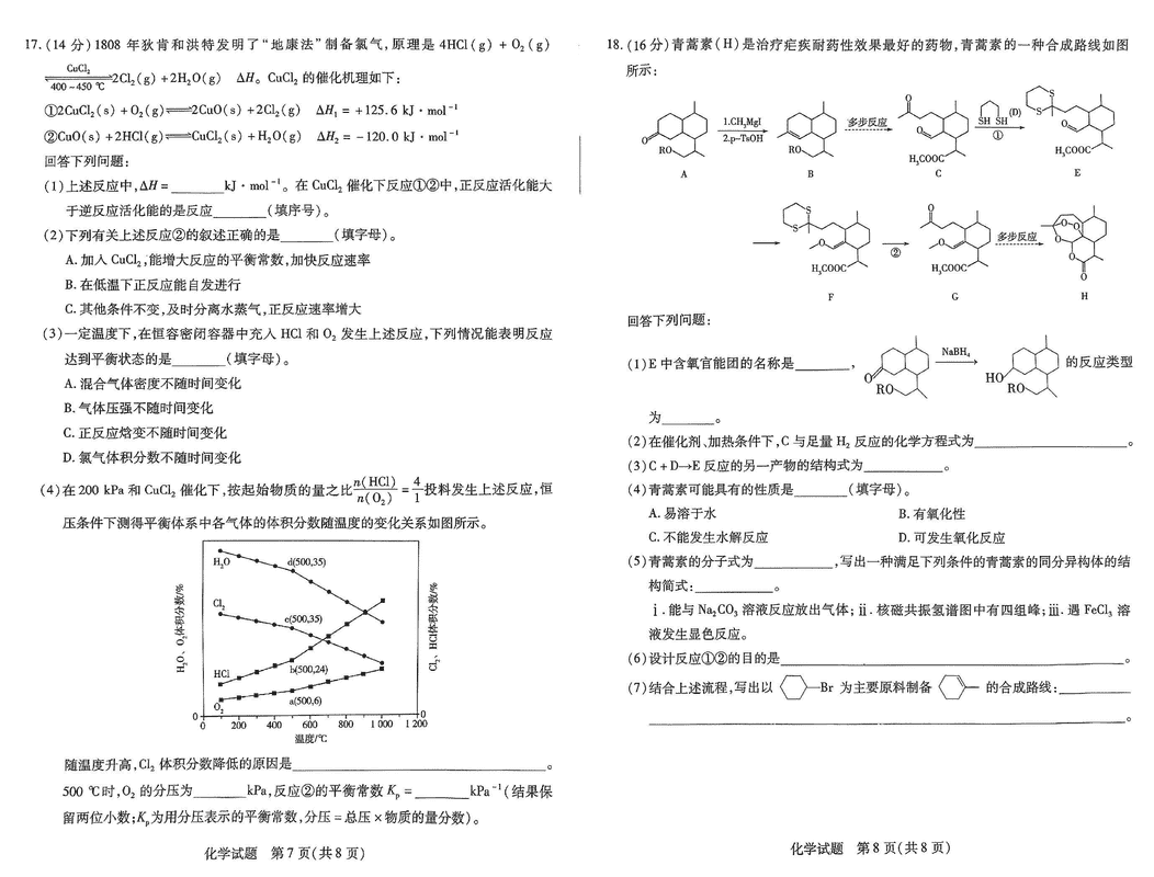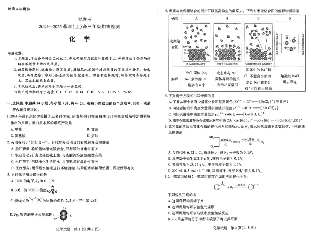 皖豫天一大联考2025届高三1月期末检测化学试题及答案
