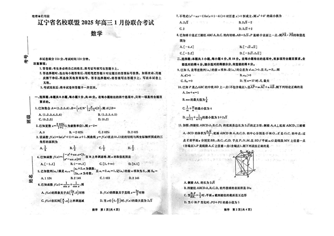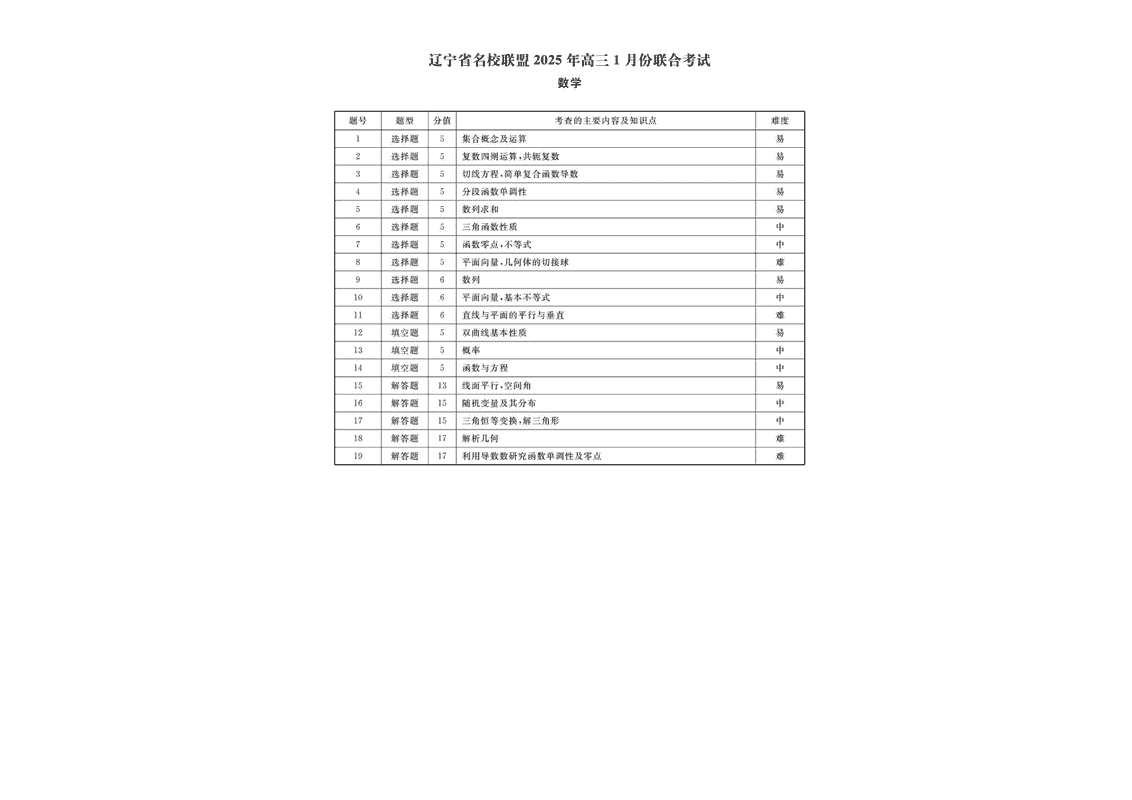 辽宁名校联盟2025年高三上学期1月联考数学考试已于近日开考,为方便考生考后及时查看考试情况,查漏补缺、弥补不足,本文整理了试题答案解析相关信息!