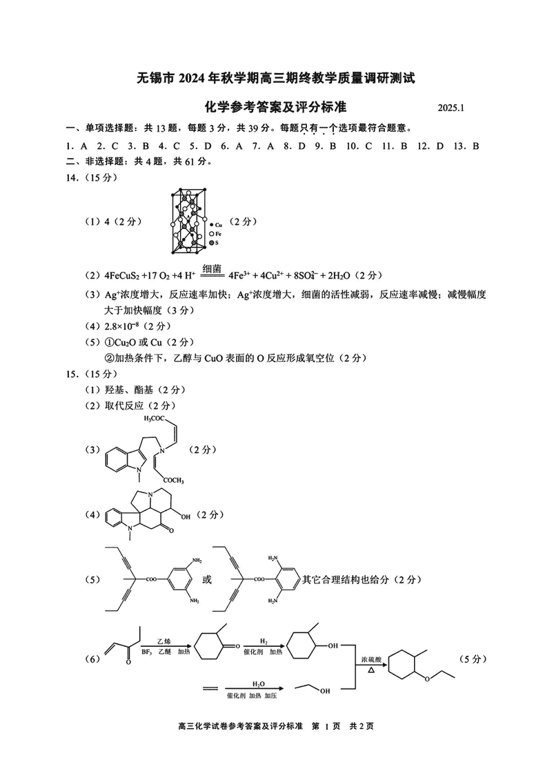 江苏无锡2025届高三期终教学质量调研化学试题及答案 时间:2025-01-17 江苏 理综试题 江苏无锡2025届高三期终教学质量调研化学考试已于近日开考,为方便考生考后及时查看考试情况,查漏补缺、弥补不足,本文整理了试题答案解析相关信息! 汇总:江苏无锡2025届高三期终教学质量调研试题及答案汇总 化学试题及答案解析