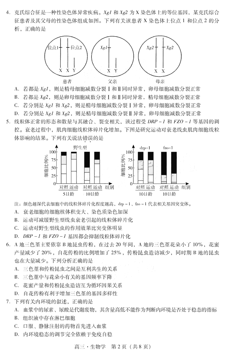 肇庆市2025届高三第二次模考暨汕尾期末生物试题及答案