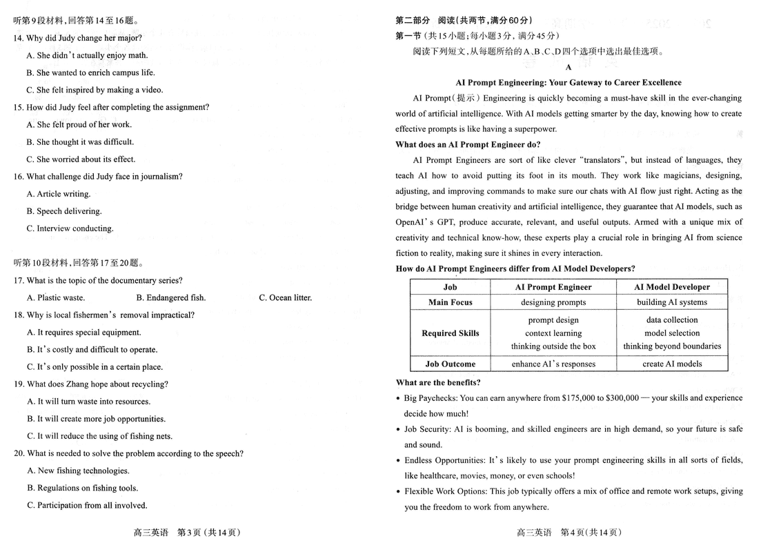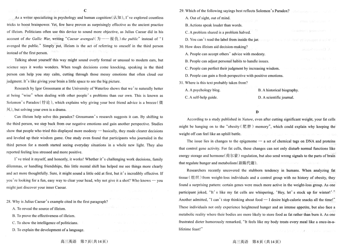 山西太原2024-2025学年高三期末学业诊断英语考试已于近日开考,为方便考生考后及时查看考试情况,查漏补缺、弥补不足,本文整理了试题答案解析相关信息!