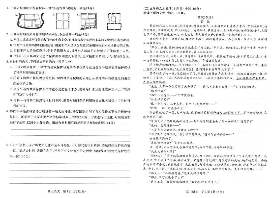 山西太原2024-2025学年高三期末学业诊断语文考试已于近日开考,为方便考生考后及时查看考试情况,查漏补缺、弥补不足,本文整理了试题答案解析相关信息!