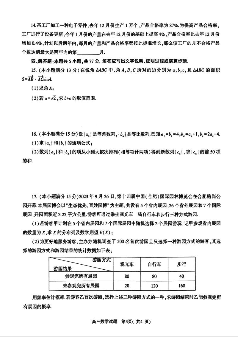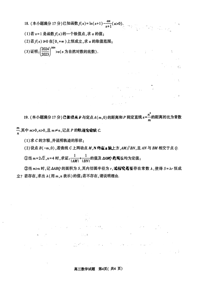河南信阳2025年高三第二次教学质检数学试题及答案