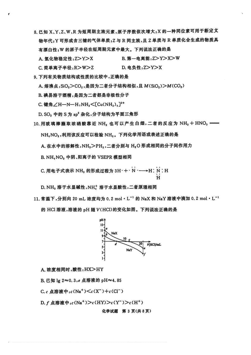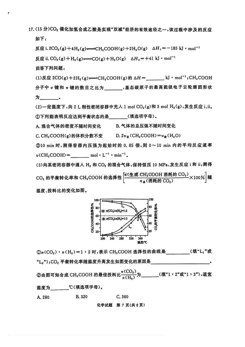 河南青桐鸣大联考2024-2025学年高三上期末化学试题及答案