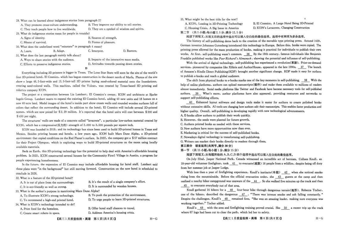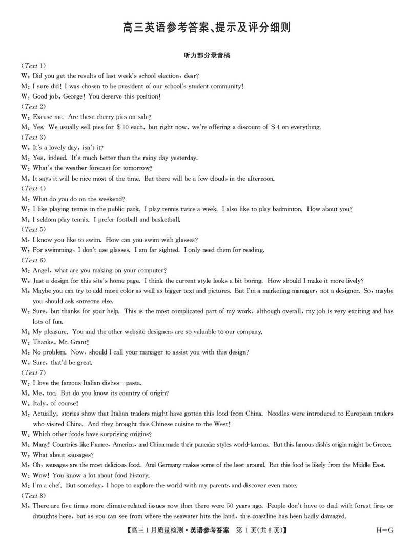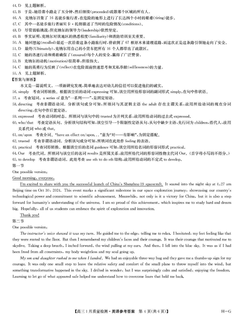 九师联盟2025届高三1月质量检测G英语试题及答案 时间:2025-01-24 英语试题 九师联盟2025届高三1月质量检测G英语考试已于近日开考,为方便考生考后及时查看考试情况,查漏补缺、弥补不足,本文整理了试题答案解析相关信息! 汇总:九师联盟2025届高三1月质量检测G试题及答案汇总 英语试题及答案解析