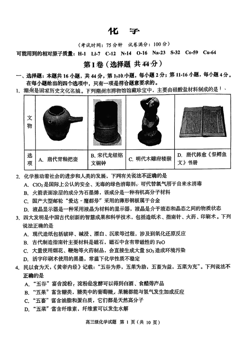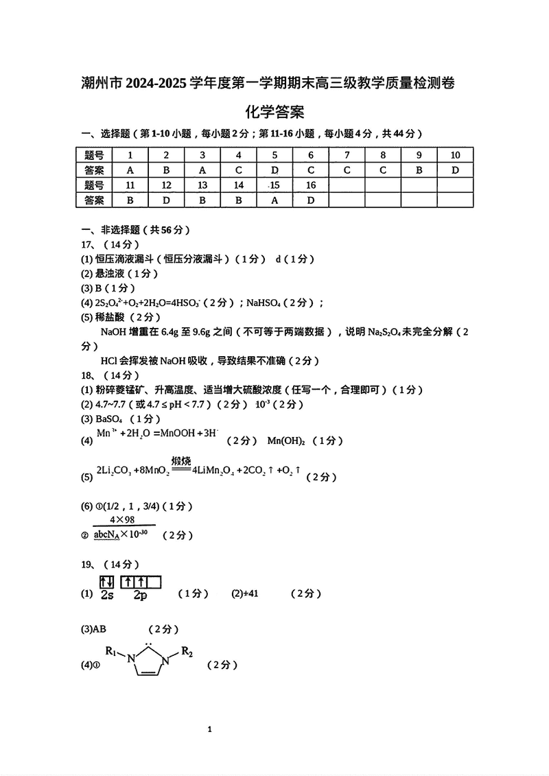 广东潮州2025年高三期末教学质检化学试题及答案 时间:2025-01-24 广东 理综试题 广东潮州2025年高三期末教学质检化学考试已于近日开考,为方便考生考后及时查看考试情况,查漏补缺、弥补不足,本文整理了试题答案解析相关信息! 汇总:广东省潮州市2025年高三期末教学质检试题及答案汇总 化学试题及答案解析