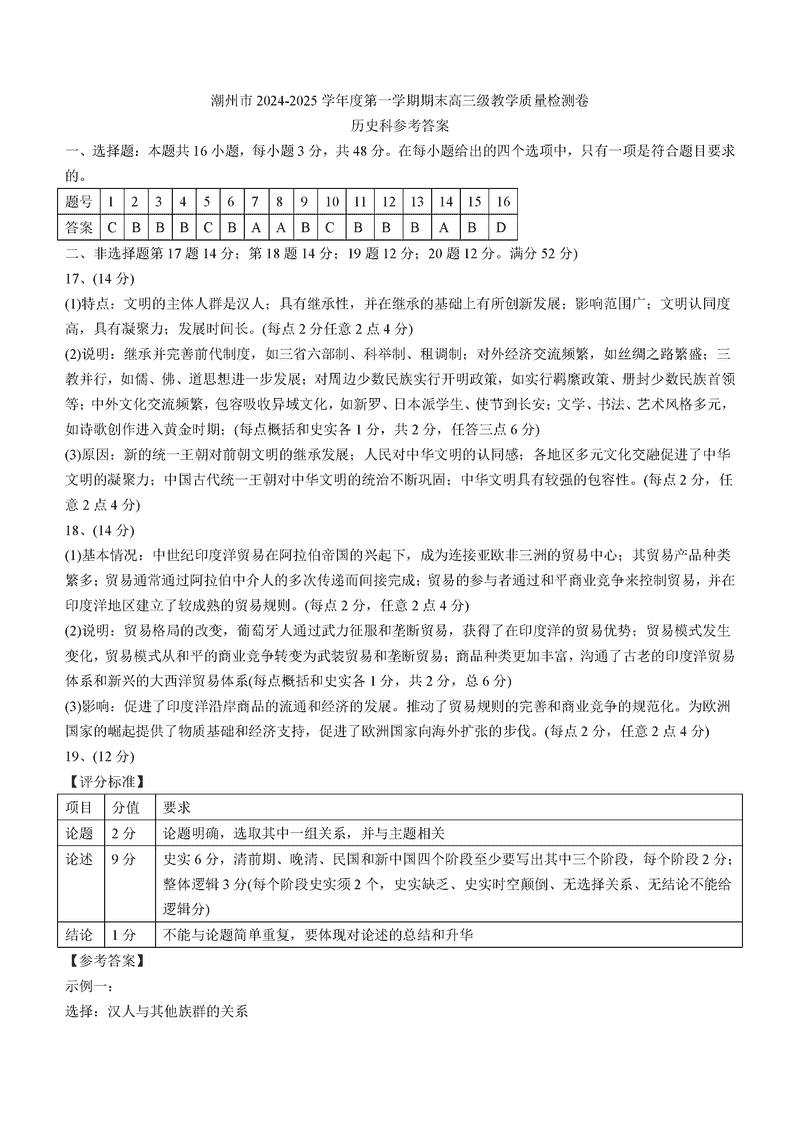 广东潮州2025年高三期末教学质检历史试题及答案 时间:2025-01-24 广东 文综试题 广东潮州2025年高三期末教学质检历史考试已于近日开考,为方便考生考后及时查看考试情况,查漏补缺、弥补不足,本文整理了试题答案解析相关信息! 汇总:广东省潮州市2025年高三期末教学质检试题及答案汇总 历史试题及答案解析