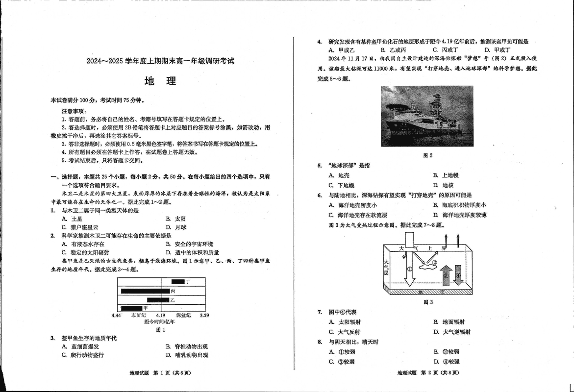 四川成都2025年高一上期期末统一调研地理试题及答案 时间:2025-01-27 四川 高中地理 四川省成都市2025年高一上期期末统一调研地理考试已于近日开考,为方便考生考后及时查看考试情况,查漏补缺、弥补不足,本文整理了试题答案解析相关信息! 地理试题及答案解析