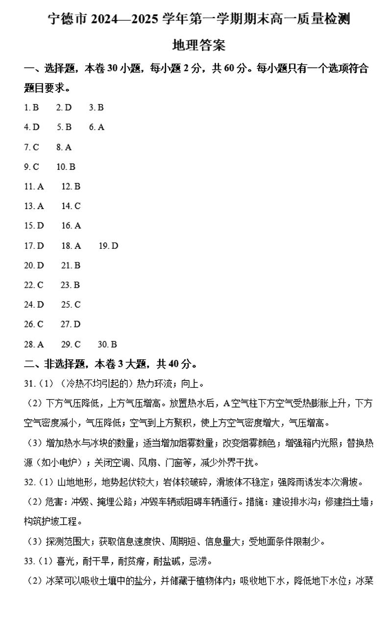 福建宁德2024-2025学年高一上学期1月期末地理试题及答案 时间:2025-01-27 福建 高中地理 福建宁德2024-2025学年高一上学期1月期末地理考试已于近日开考,为方便考生考后及时查看考试情况,查漏补缺、弥补不足,本文整理了试题答案解析相关信息! 地理试题及答案解析