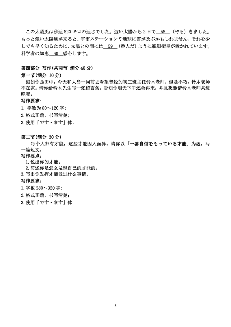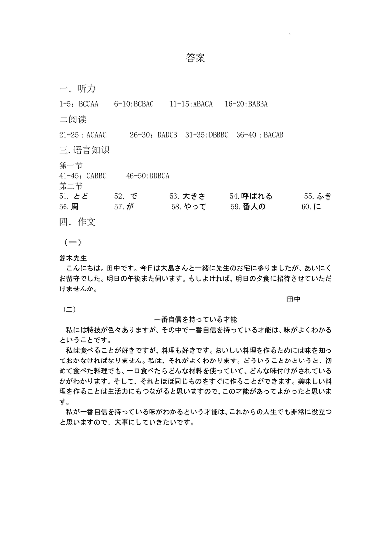 山西三晋卓越联盟2025届高三上学期期末日语试题及答案