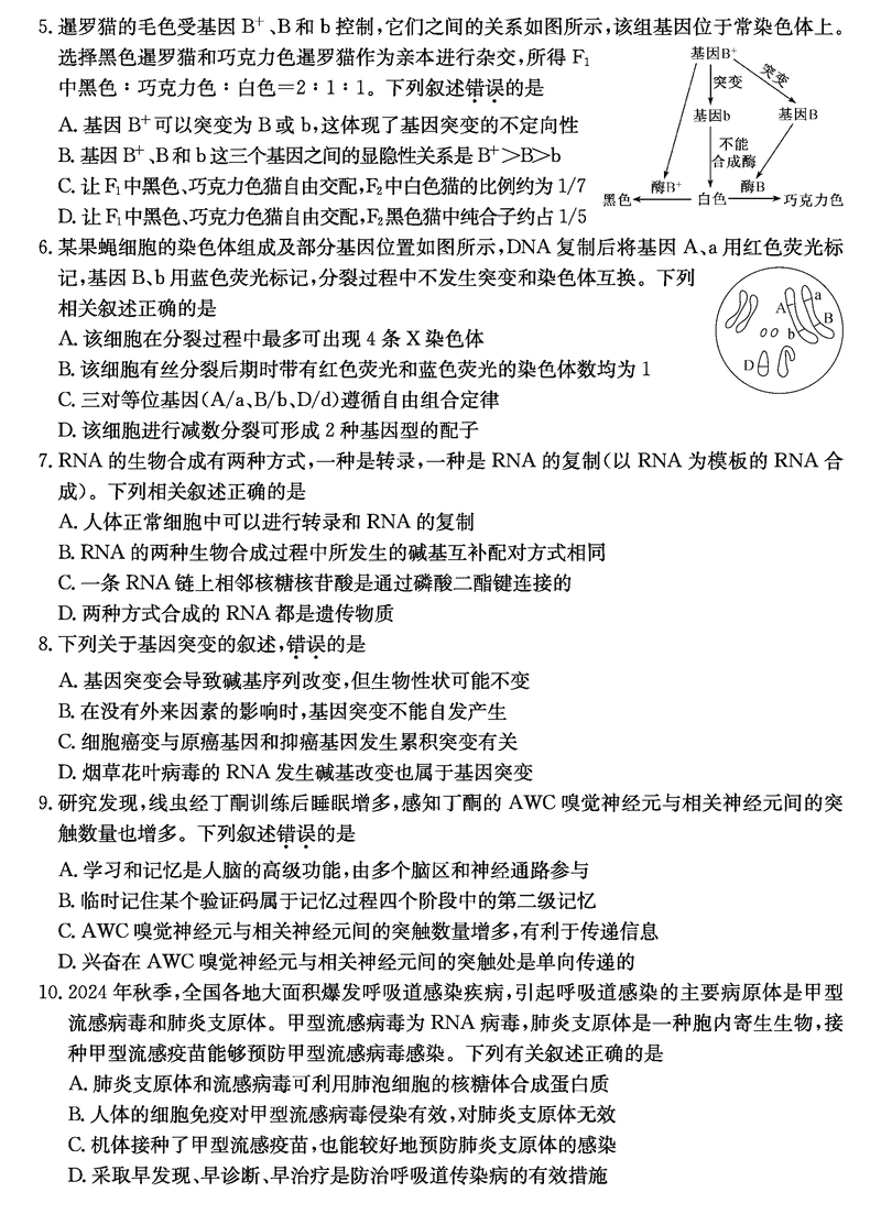 山西三晋卓越联盟2025届高三上学期期末生物试题及答案