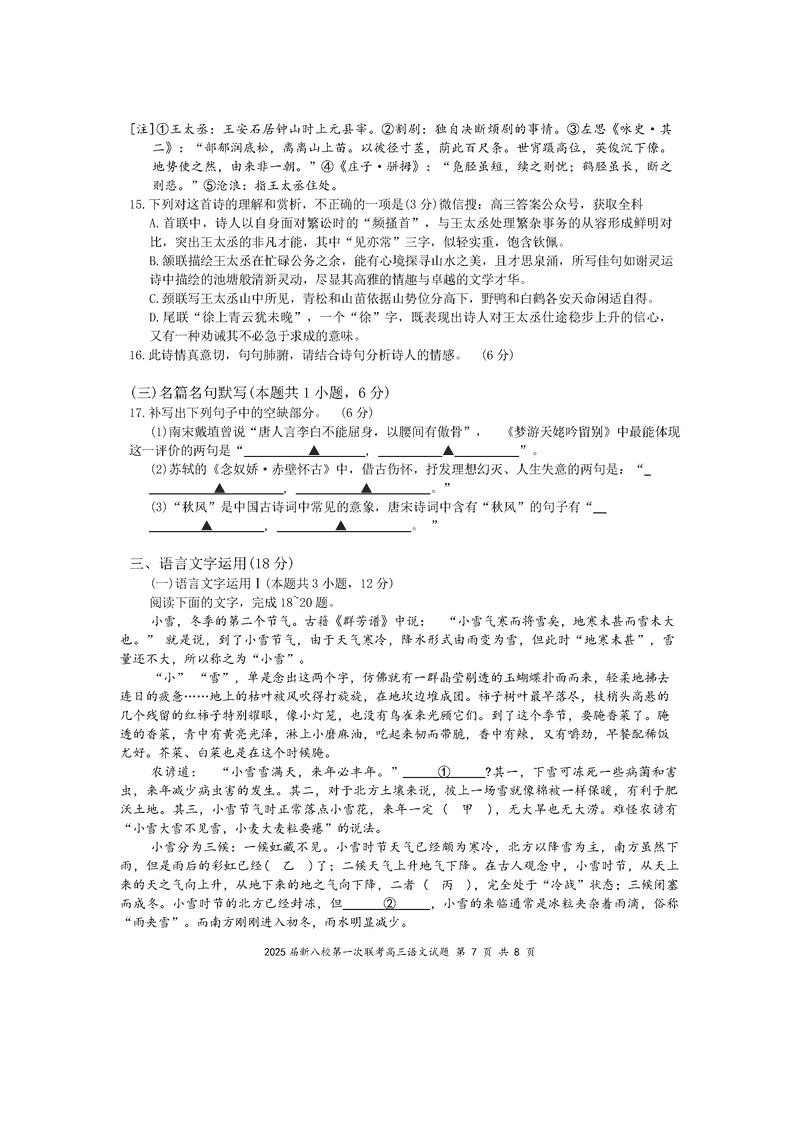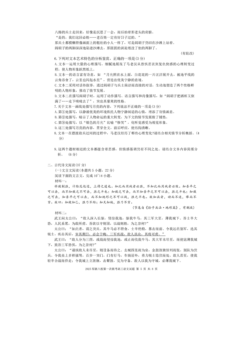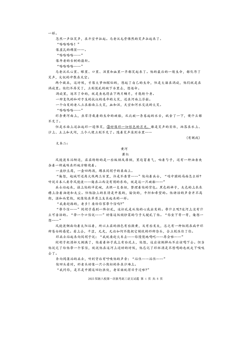 江西省新八校2025届高三第一次联考语文试题及答案 时间:2025-01-27 江西 语文试题 江西省新八校2025届高三第一次联考语文考试已于近日开考,为方便考生考后及时查看考试情况,查漏补缺、弥补不足,本文整理了试题答案解析相关信息! 汇总:江西省新八校2025届高三第一次联考试题及答案汇总 语文试题及答案解析