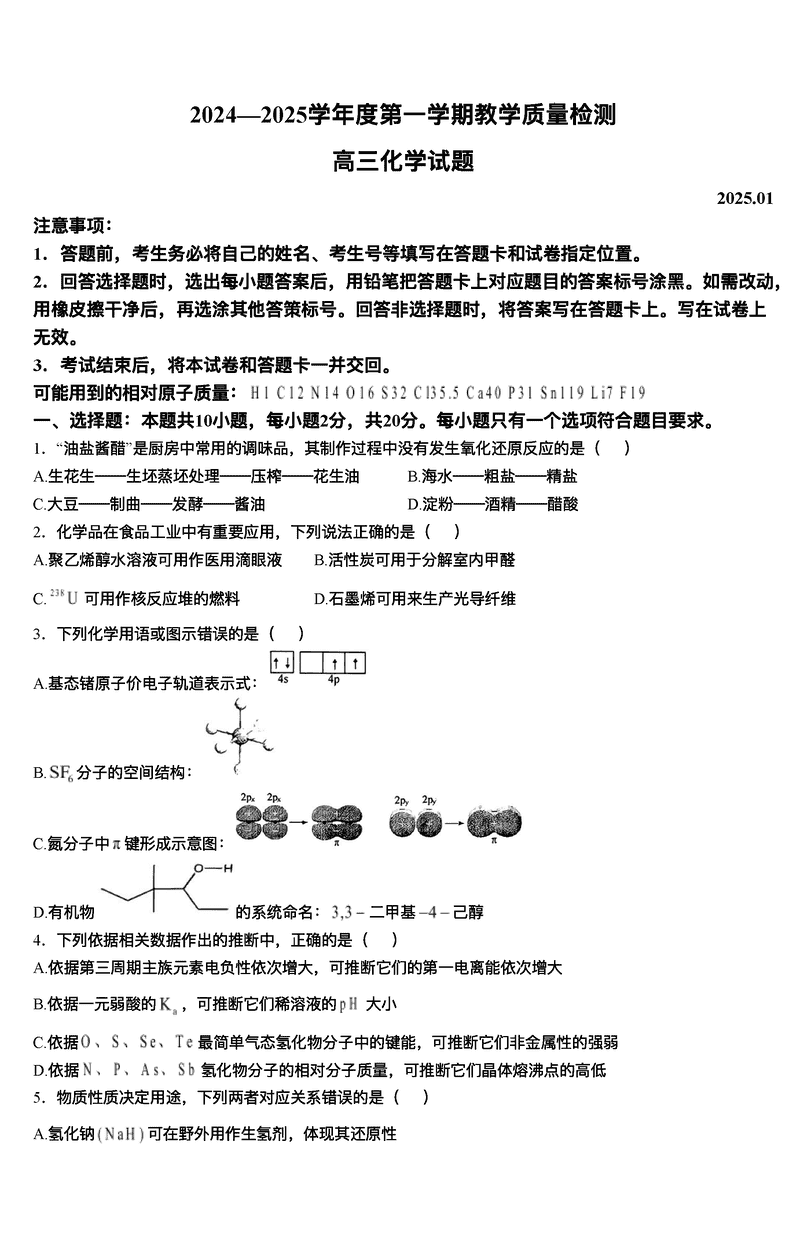 山东青岛2025届高三1月期末化学试题及答案 时间:2025-01-27 山东 理综试题 山东青岛2025届高三1月期末化学考试已于近日开考,为方便考生考后及时查看考试情况,查漏补缺、弥补不足,本文整理了试题答案解析相关信息! 汇总:山东青岛2025届高三1月期末考试题及答案汇总 化学试题及答案解析