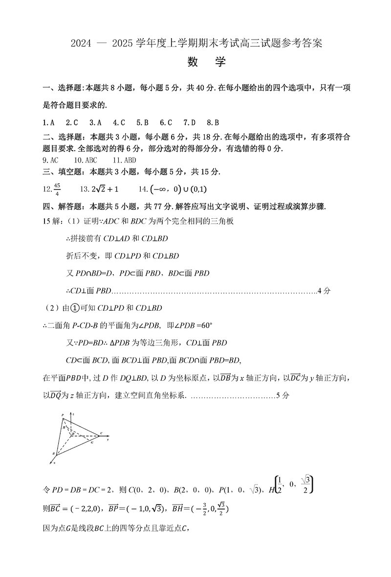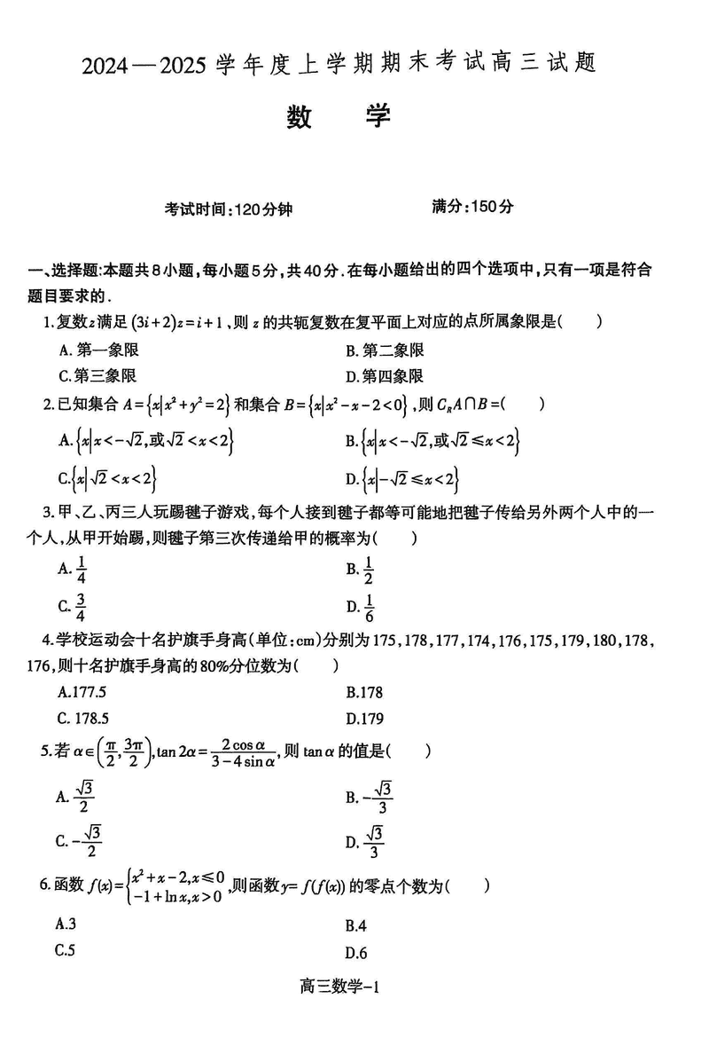 辽宁省省重点中学协作校2025届高三上学期1月期末数学试题及答案