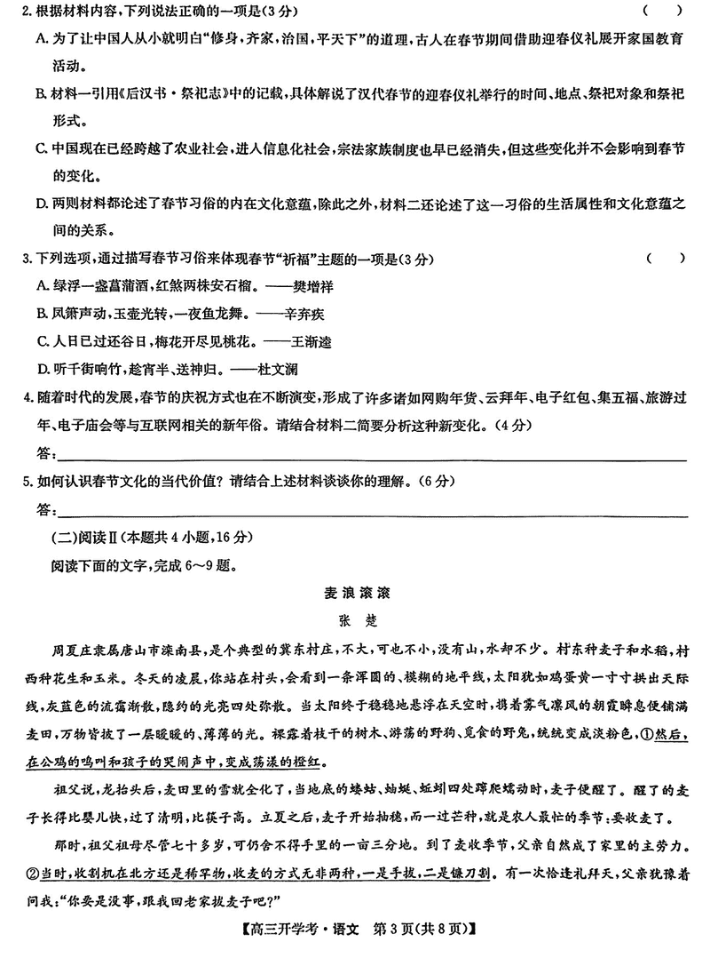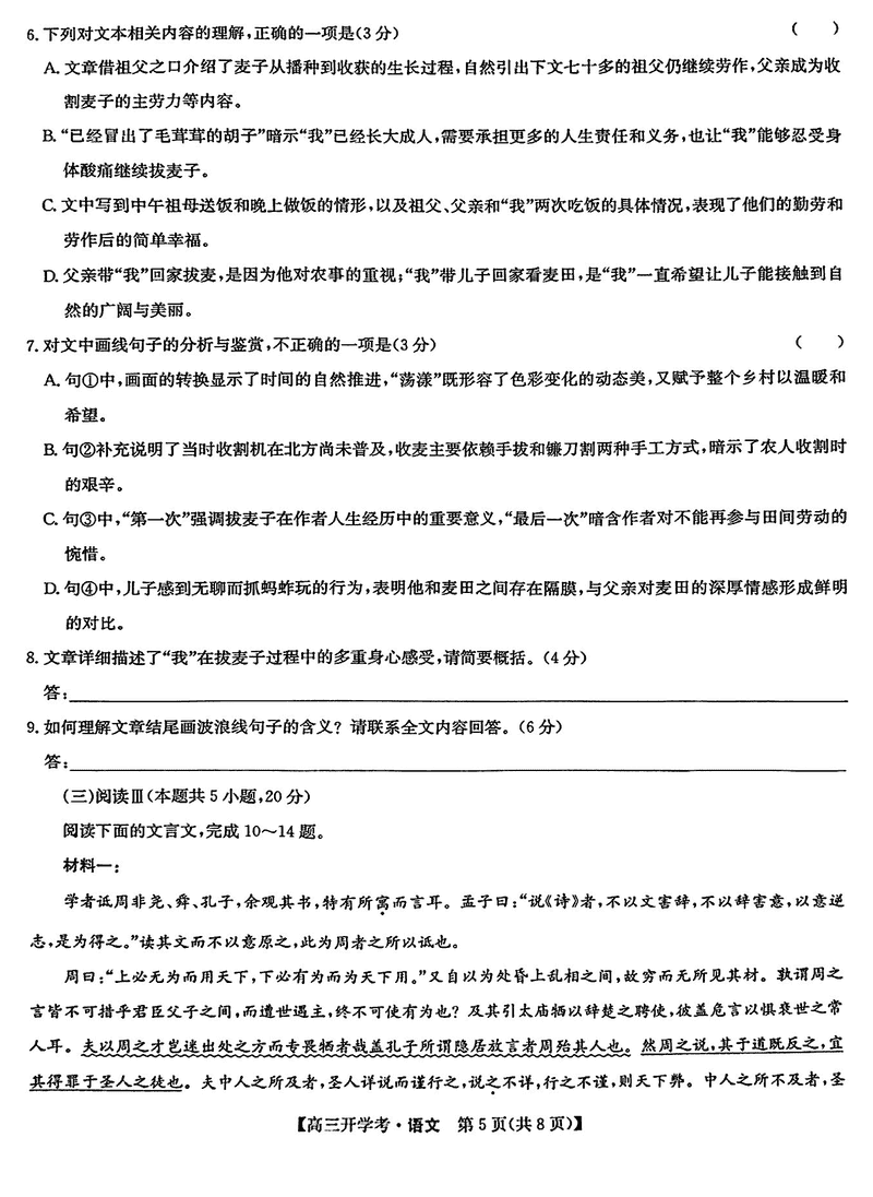 九师联盟2025年2月高三下学期开学考语文试题及答案 时间:2025-02-07 语文试题 九师联盟2025年2月高三下学期开学考语文考试已于近日开考,为方便考生考后及时查看考试情况,查漏补缺、弥补不足,本文整理了试题答案解析相关信息! 汇总:九师联盟2025年2月高三下学期开学考试题及答案汇总 语文试题及答案解析