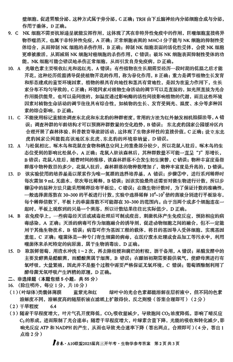 安徽省A10联盟2025届高三下学期开年考生物考试已于近日开考,为方便考生考后及时查看考试情况,查漏补缺、弥补不足,本文整理了试题答案解析相关信息!