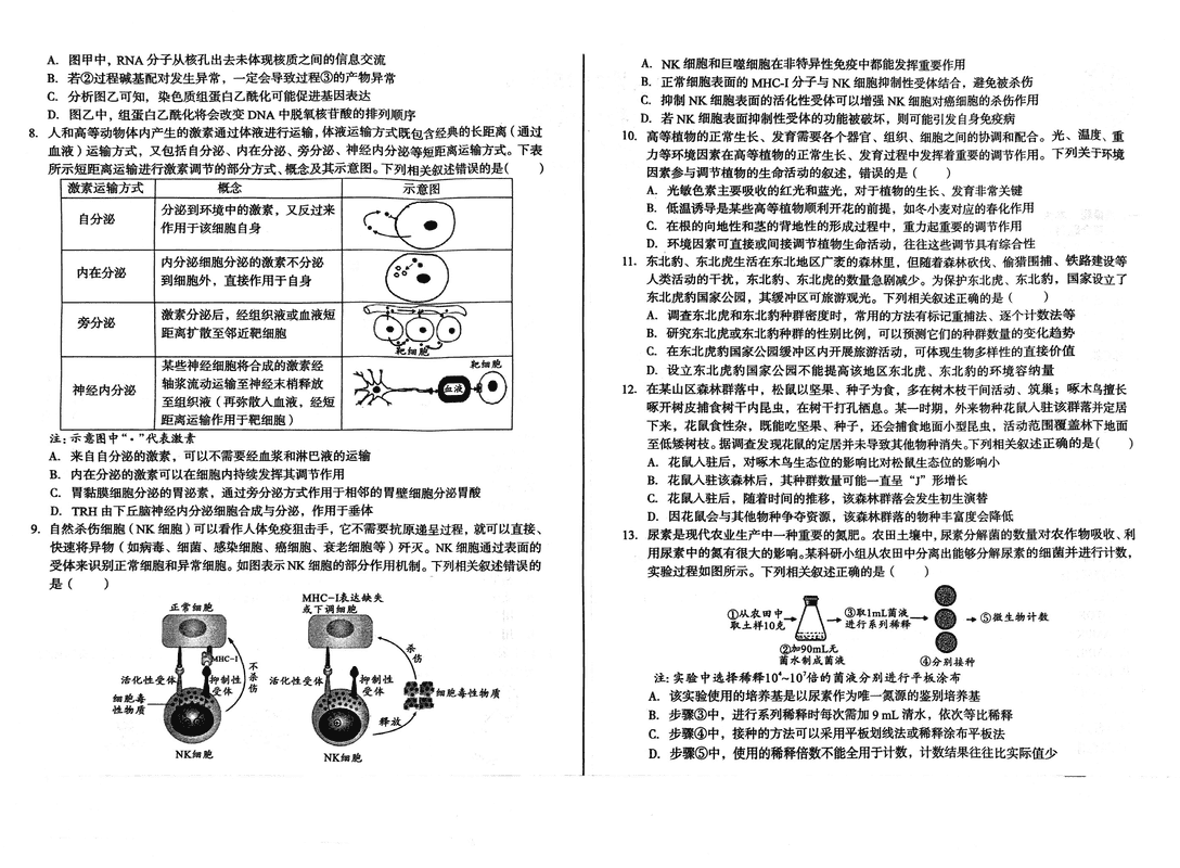 安徽省A10联盟2025届高三下学期开年考生物试题及答案