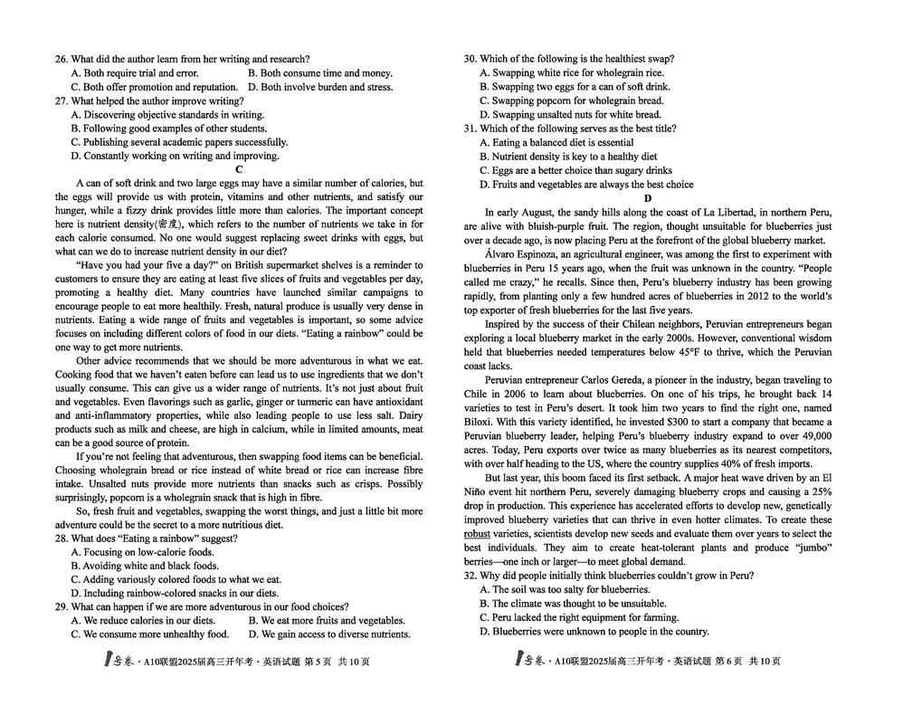 安徽省A10联盟2025届高三下学期开年考英语试题及答案