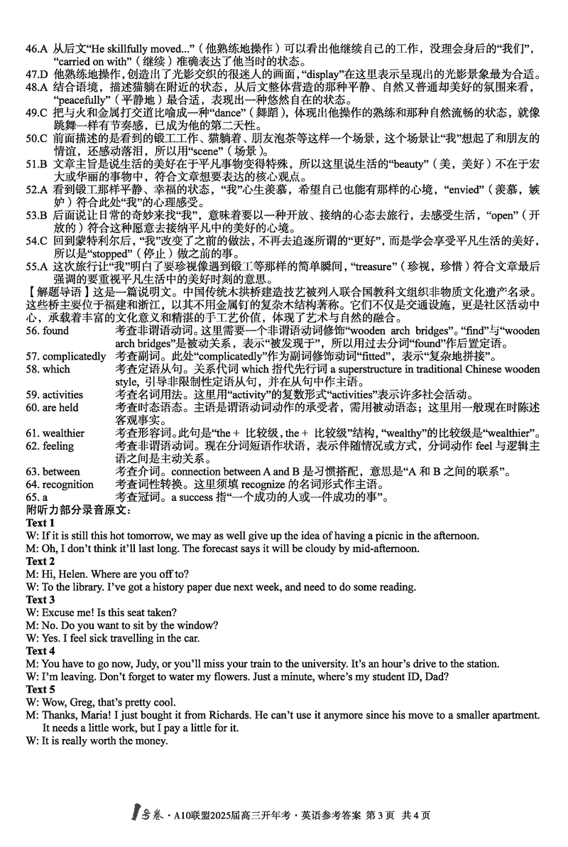 安徽省A10联盟2025届高三下学期开年考英语考试已于近日开考,为方便考生考后及时查看考试情况,查漏补缺、弥补不足,本文整理了试题答案解析相关信息!