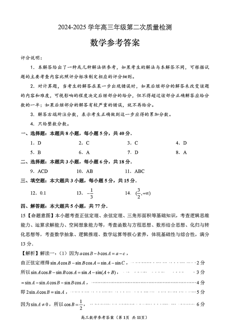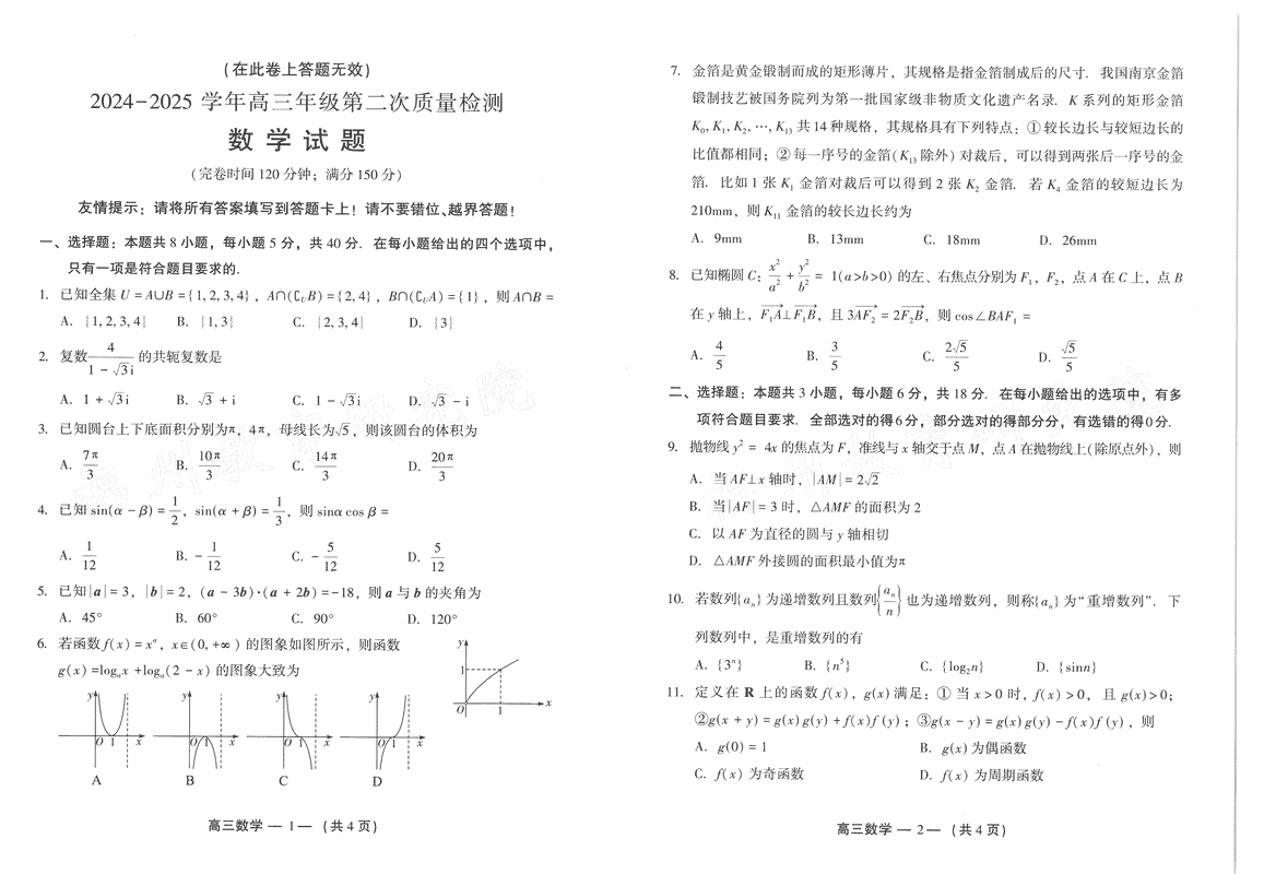 福州二检2024-2025学年高三第二次质检数学考试已于近日开考,为方便考生考后及时查看考试情况,查漏补缺、弥补不足,本文整理了试题答案解析相关信息!