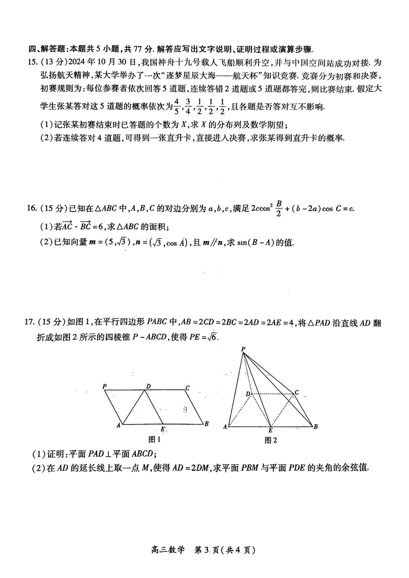 江西上进联考2024-2025学年高三下学期2月统测数学试题及答案