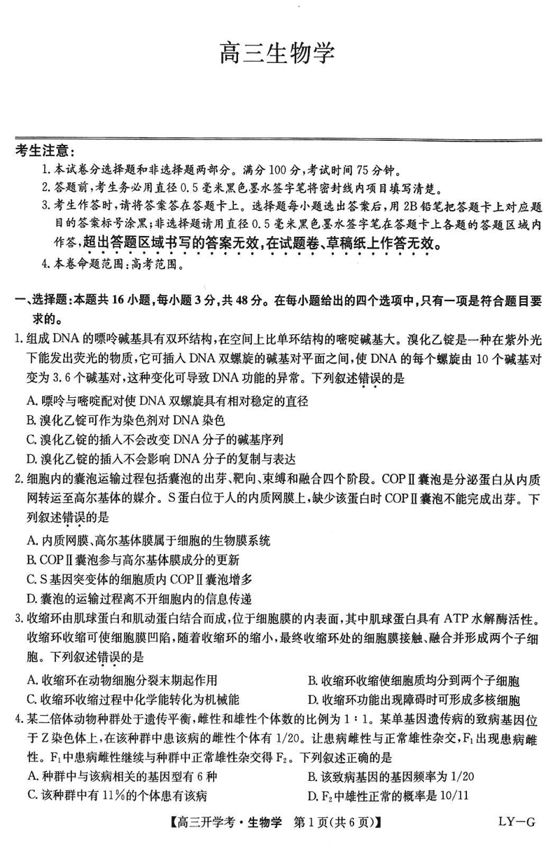 九师联盟2025届高三2月开学考生物试题及答案 时间:2025-02-16 理综试题 九师联盟2025届高三2月开学考生物考试已于近日开考,为方便考生考后及时查看考试情况,查漏补缺、弥补不足,本文整理了试题答案解析相关信息! 汇总:九师联盟2025届高三2月开学考试题及答案汇总 生物试题及答案解析