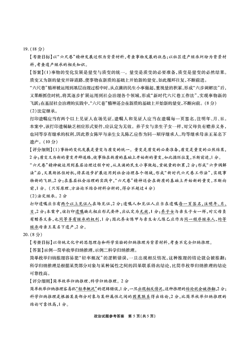 安徽六校2025年高三2月春季素质检测政治试题及答案