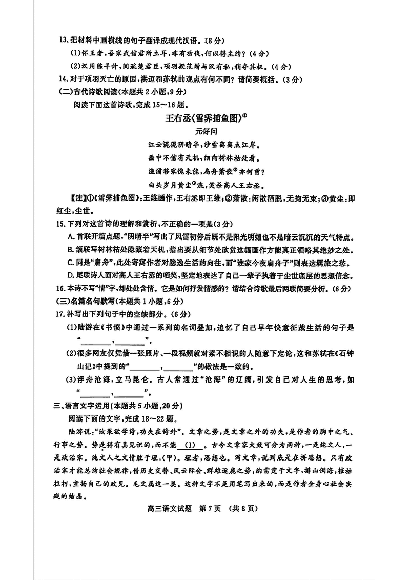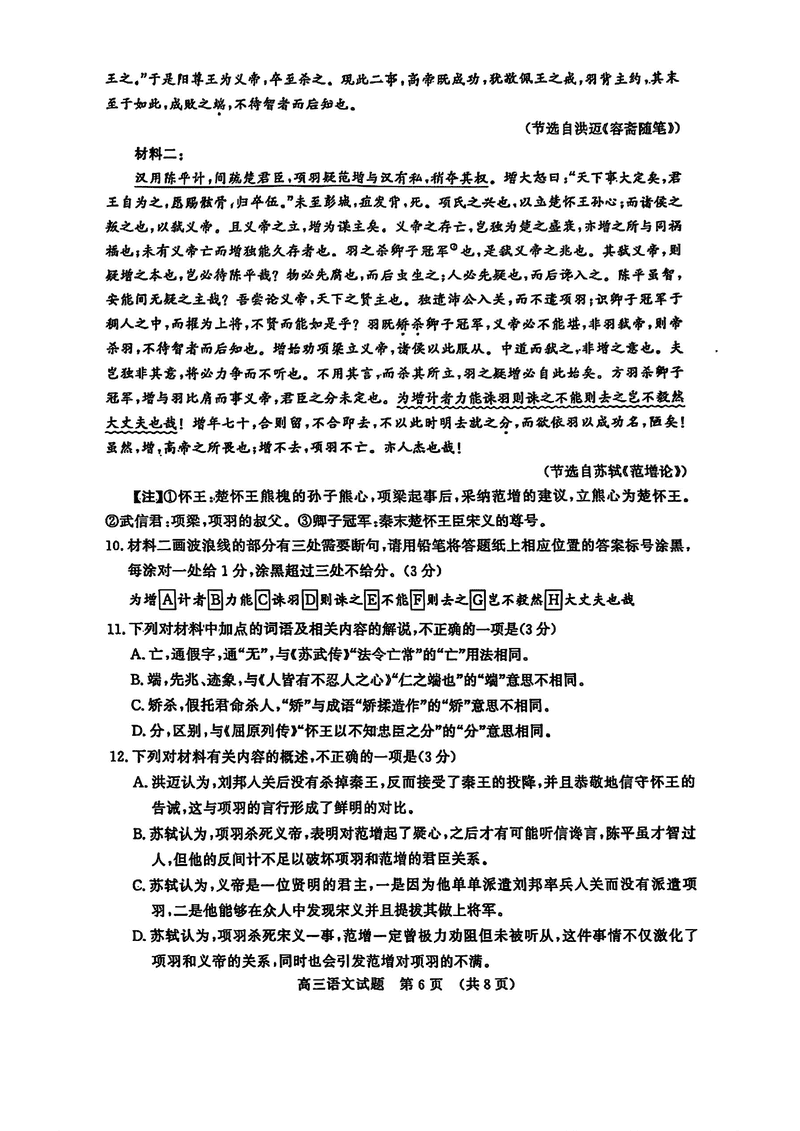 山东名校联盟2025年2月高三下学期开学联考语文试题及答案