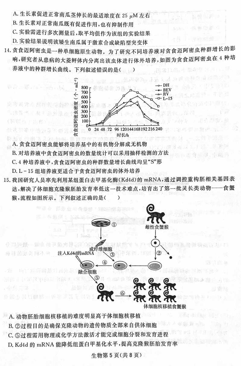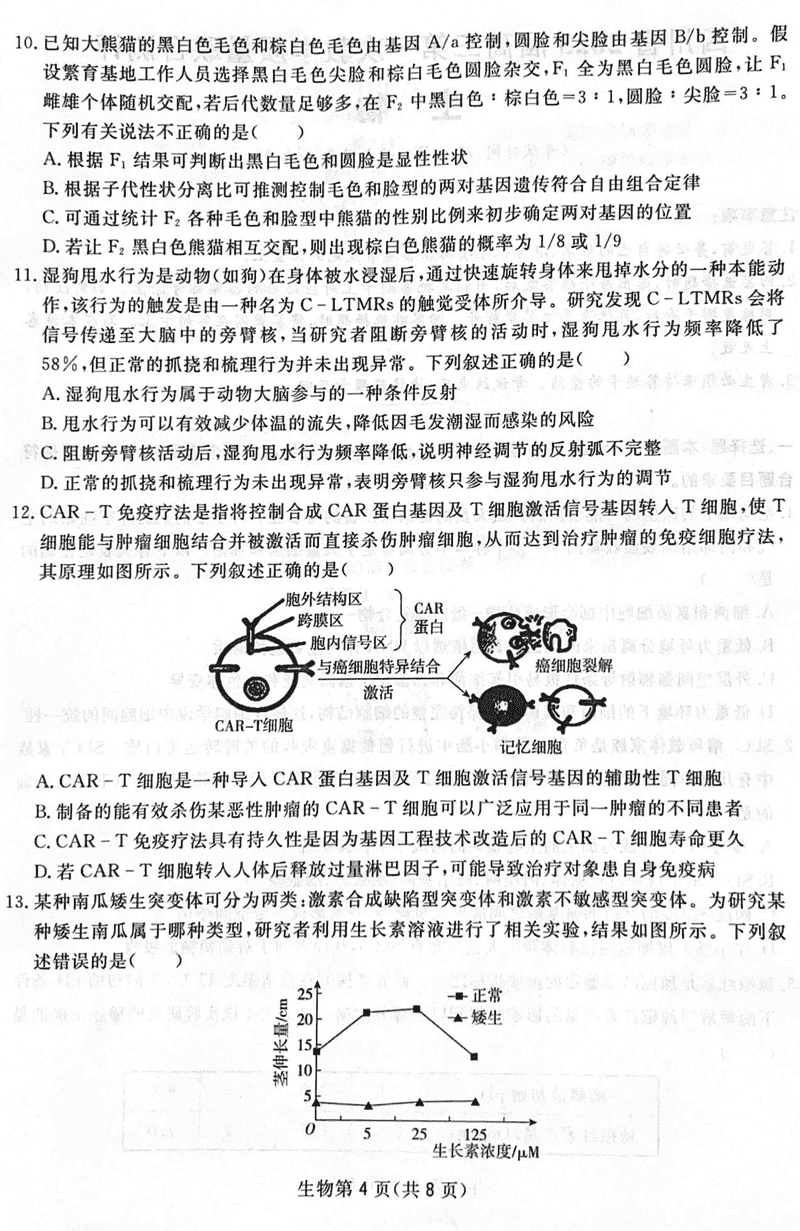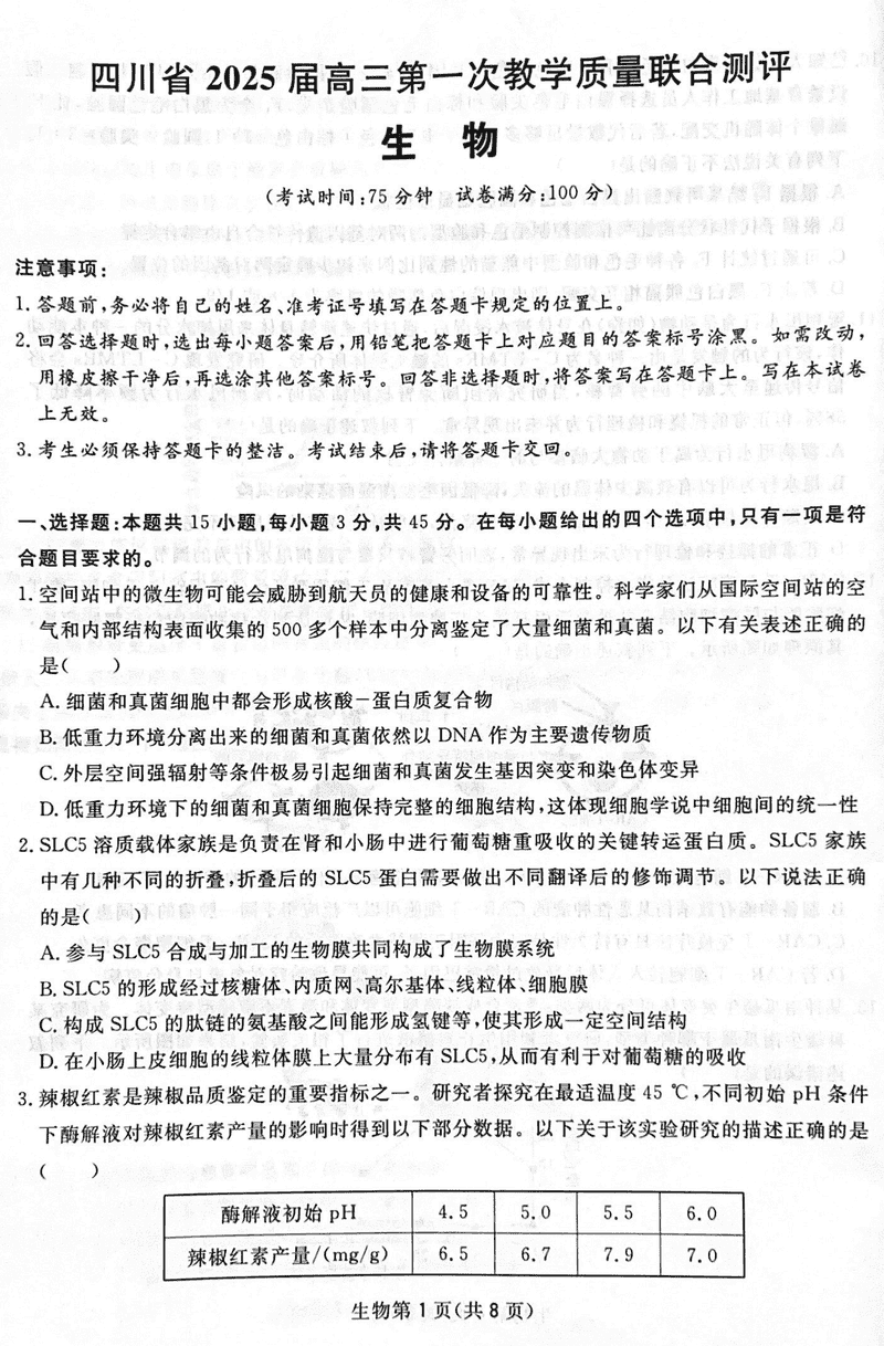 四川省2025届高三下学期第一次教学质量联合测评生物试题及答案