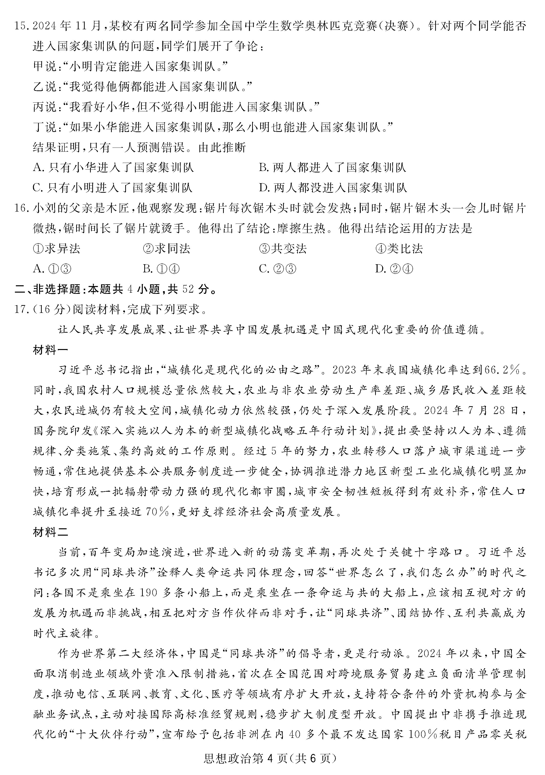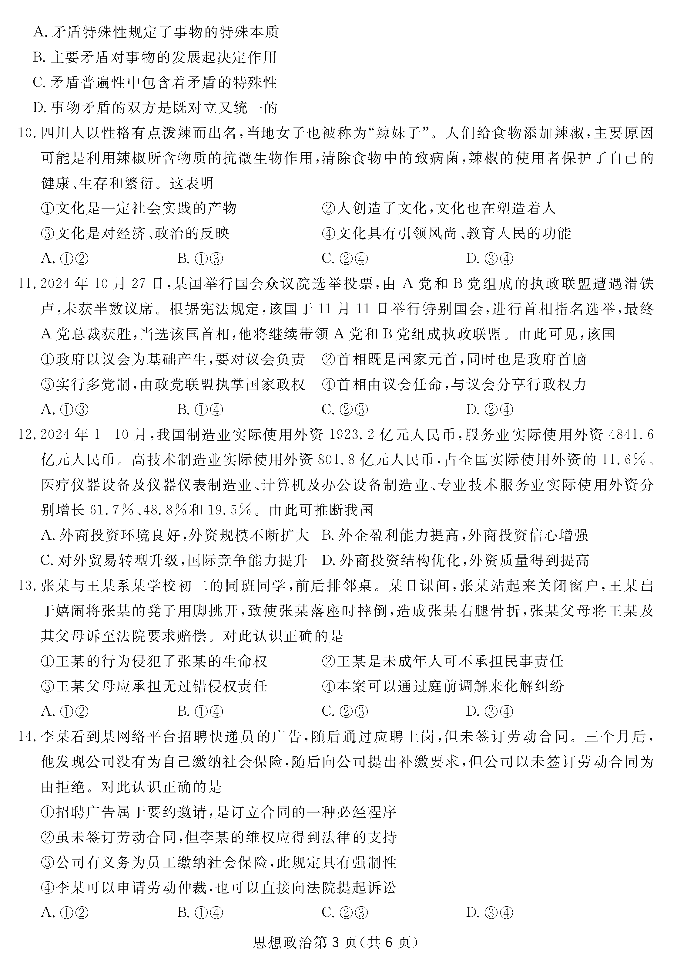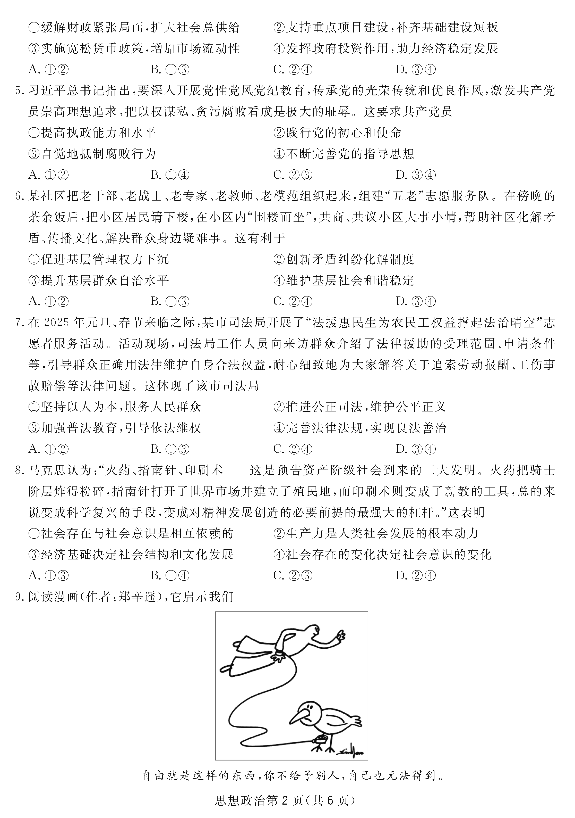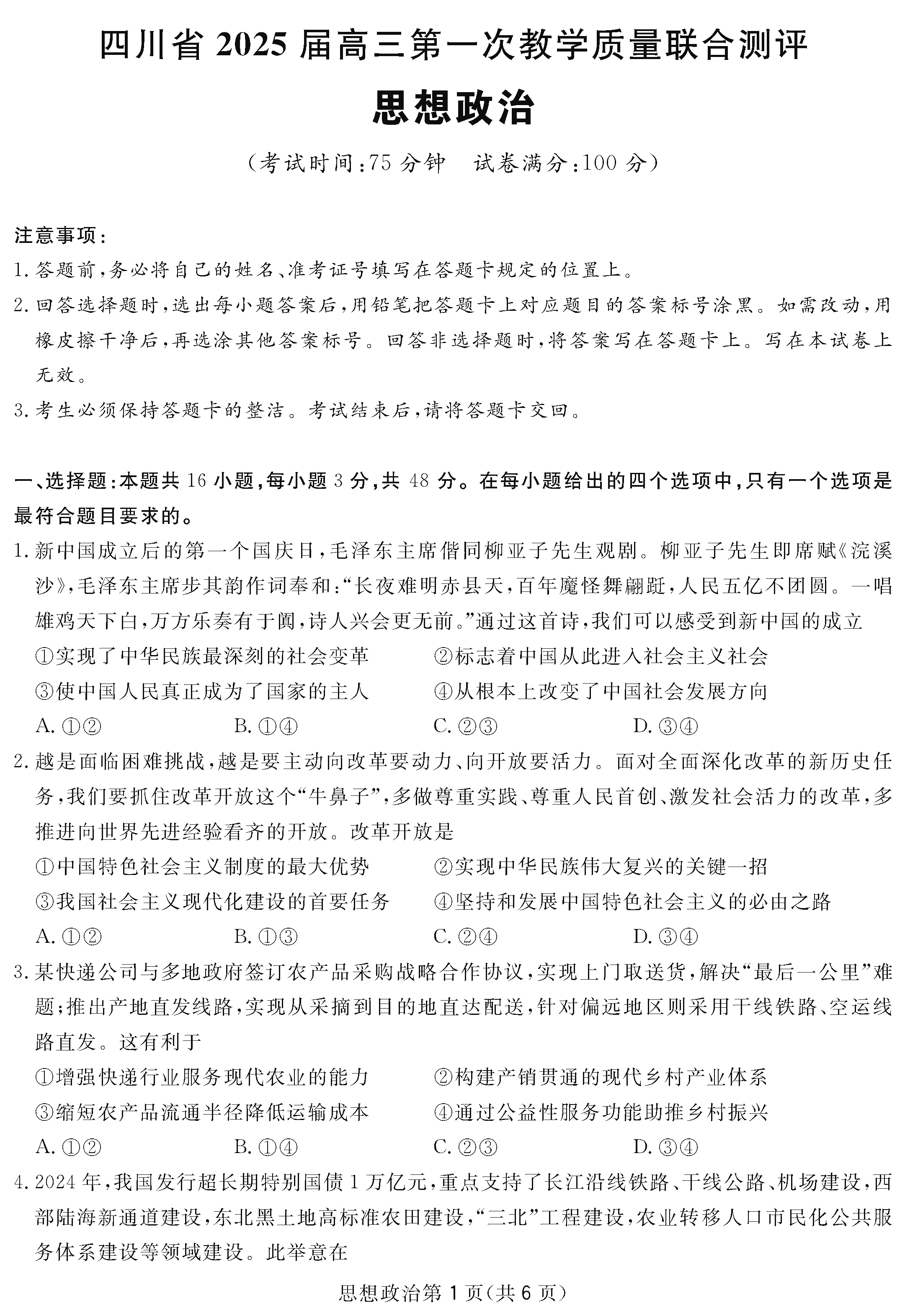 四川省2025届高三下学期第一次教学质量联合测评政治试题及答案