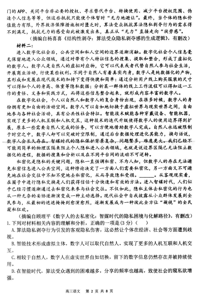 扬州高邮2025年高三下学期期初学情调研语文试题及答案 时间:2025-02-20 江苏 语文试题 扬州高邮2025年高三下学期期初学情调研语文考试已于近日开考,为方便考生考后及时查看考试情况,查漏补缺、弥补不足,本文整理了试题答案解析相关信息! 汇总:扬州高邮2025年高三下学期开学考试题及答案汇总 语文试题及答案解析