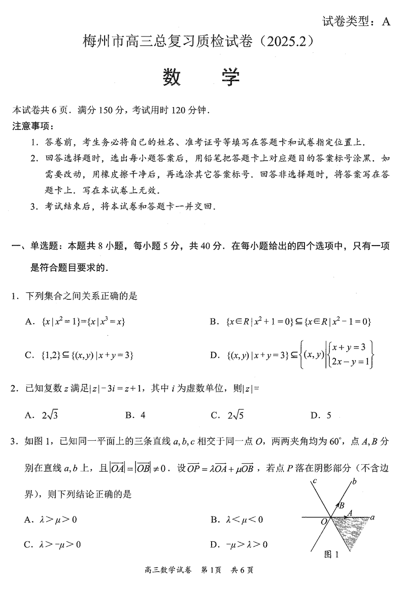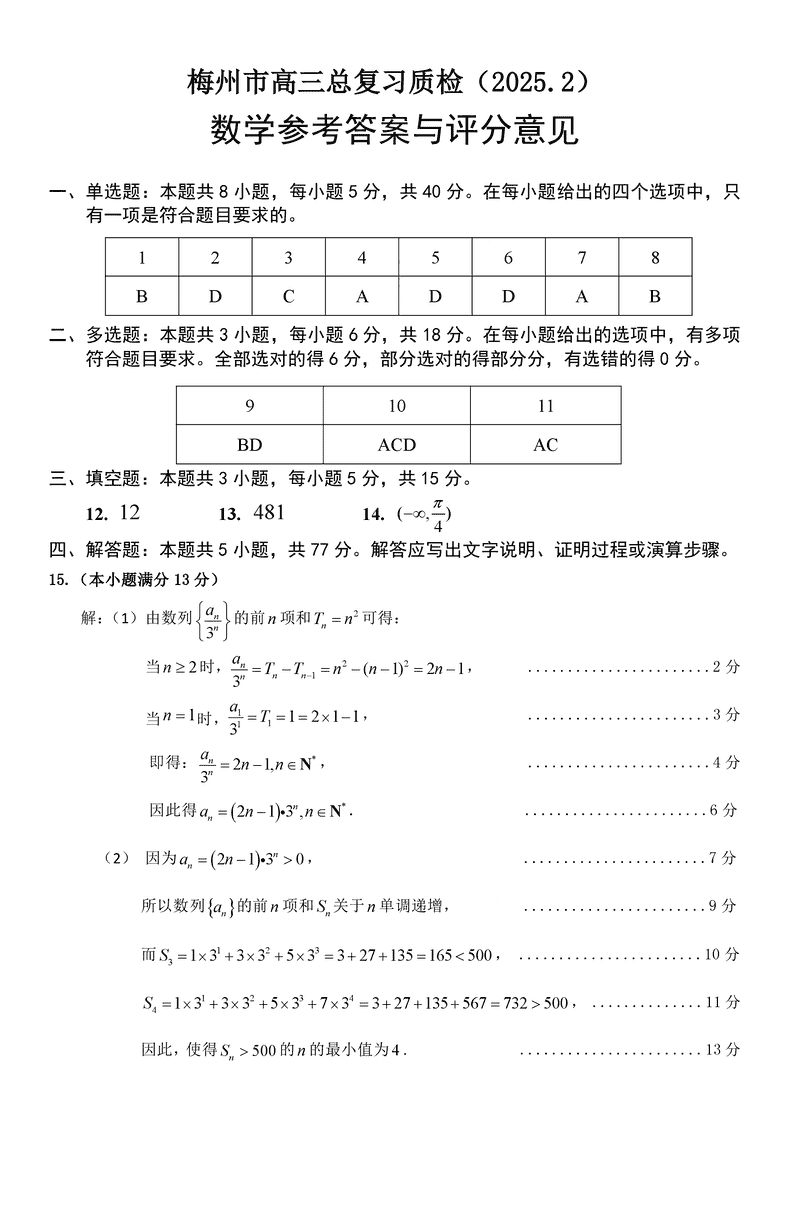 广东梅州一模2025届高三下学期模拟预测(一)数学考试已于近日开考,为方便考生考后及时查看考试情况,查漏补缺、弥补不足,本文整理了试题答案解析相关信息!