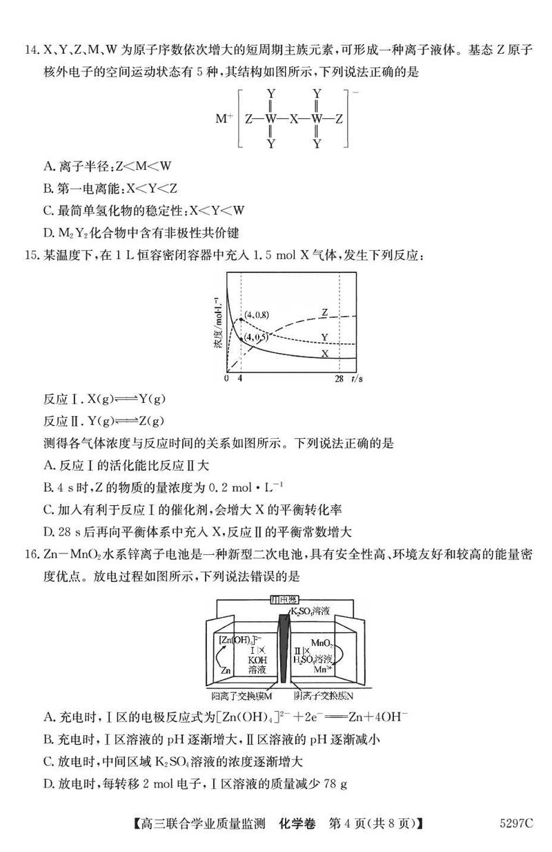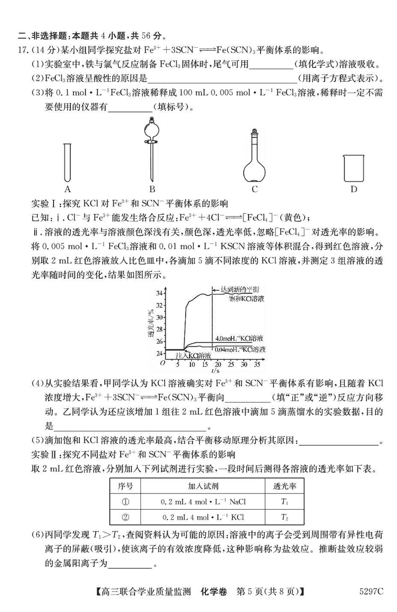 广东省2025届高三"百日冲刺"联合学业质量监测化学试题及答案