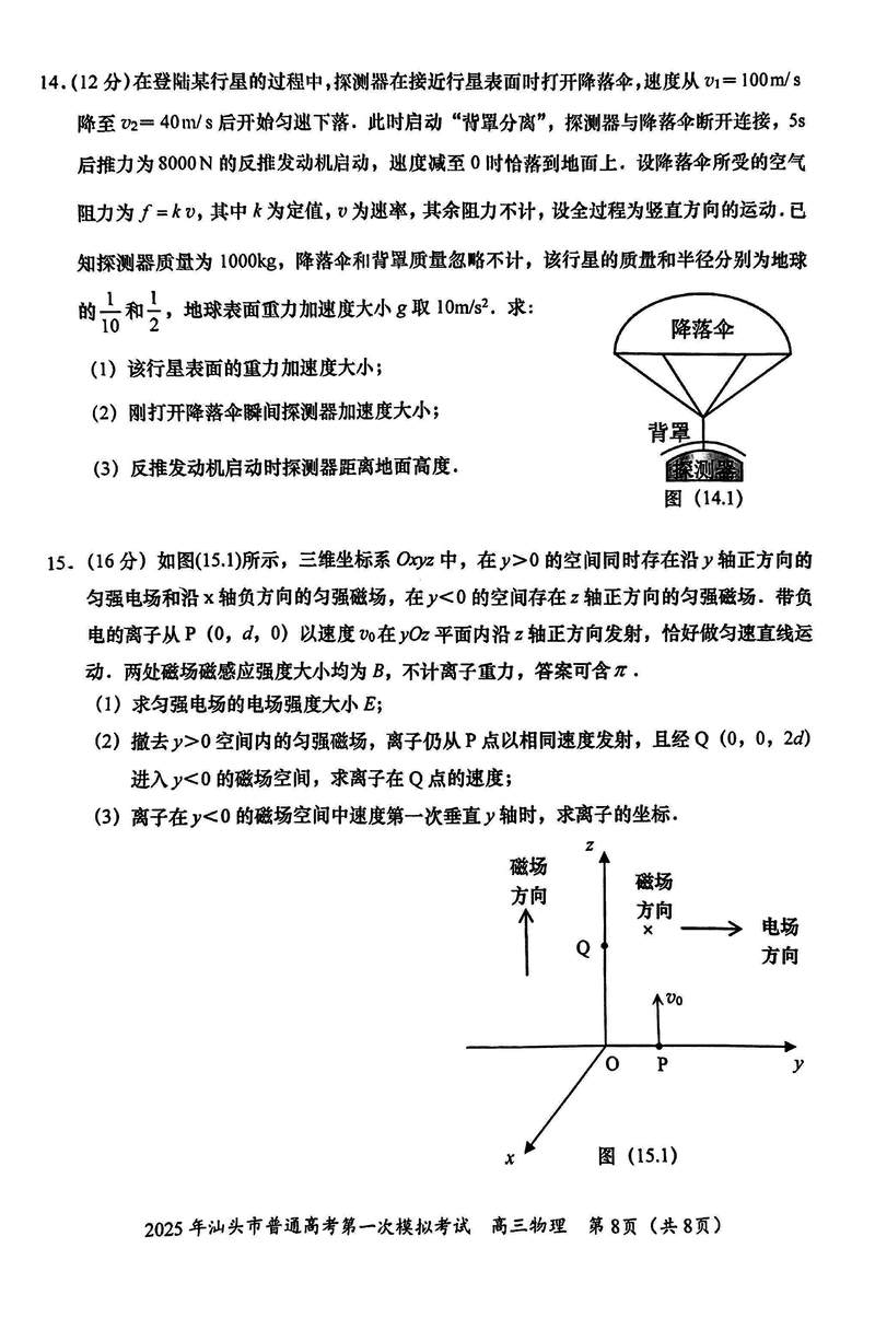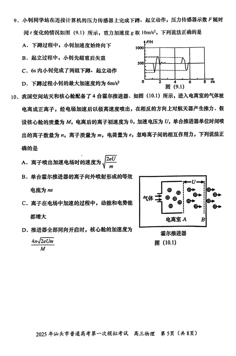 汕头一模2025届高三下学期第一次模拟考物理试题及答案